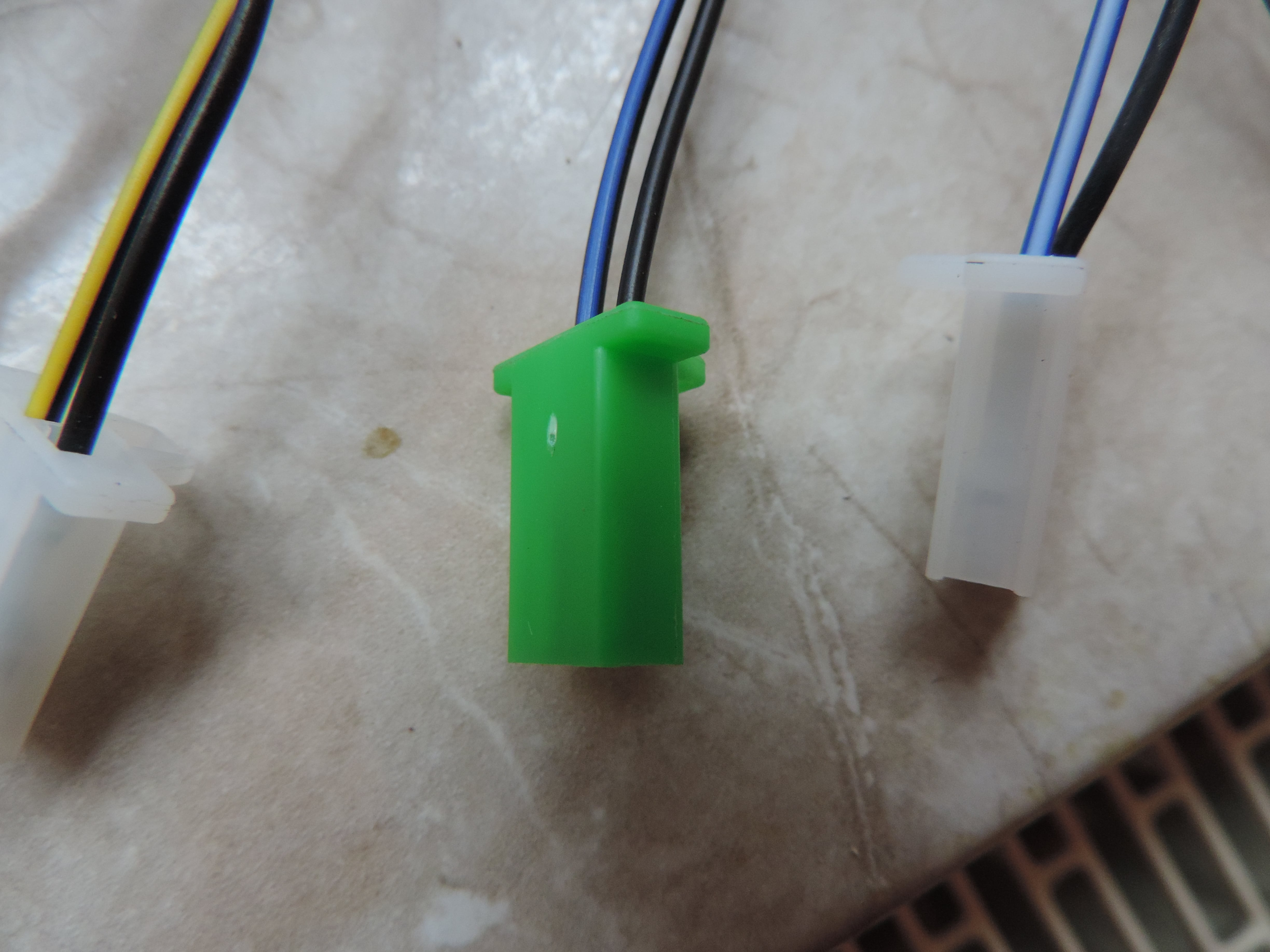 tatsächlich habe ich einen dreifach stecker gefunden. der hat genau die kabel farben von den die das gegenstück sind...