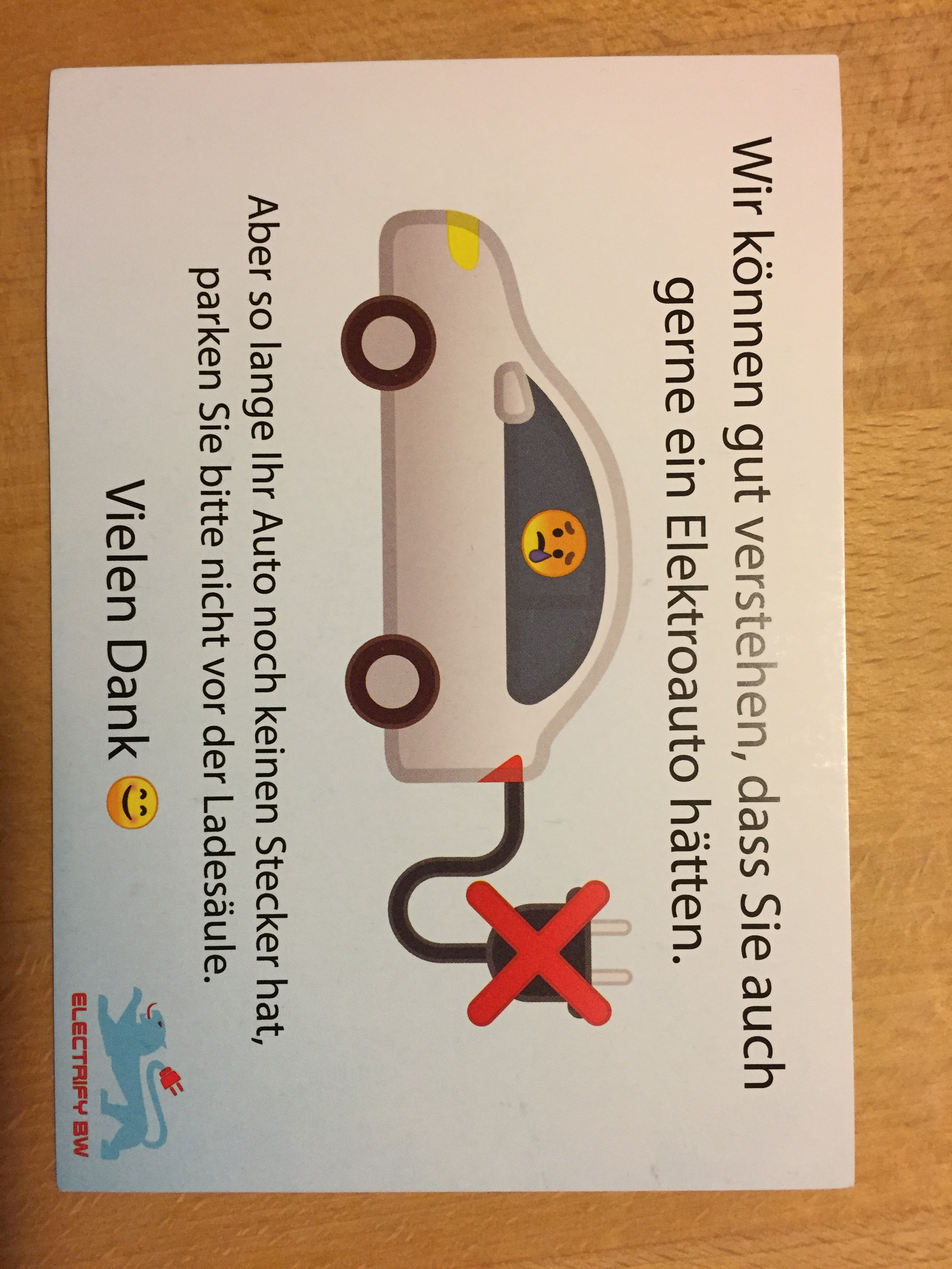 Und Alfred, was hättest Du lieber als "versehentlicher" Falschparker vor einer Ladesäule - Knöllchen oder die freundlich-aber-bestimmte Karte?