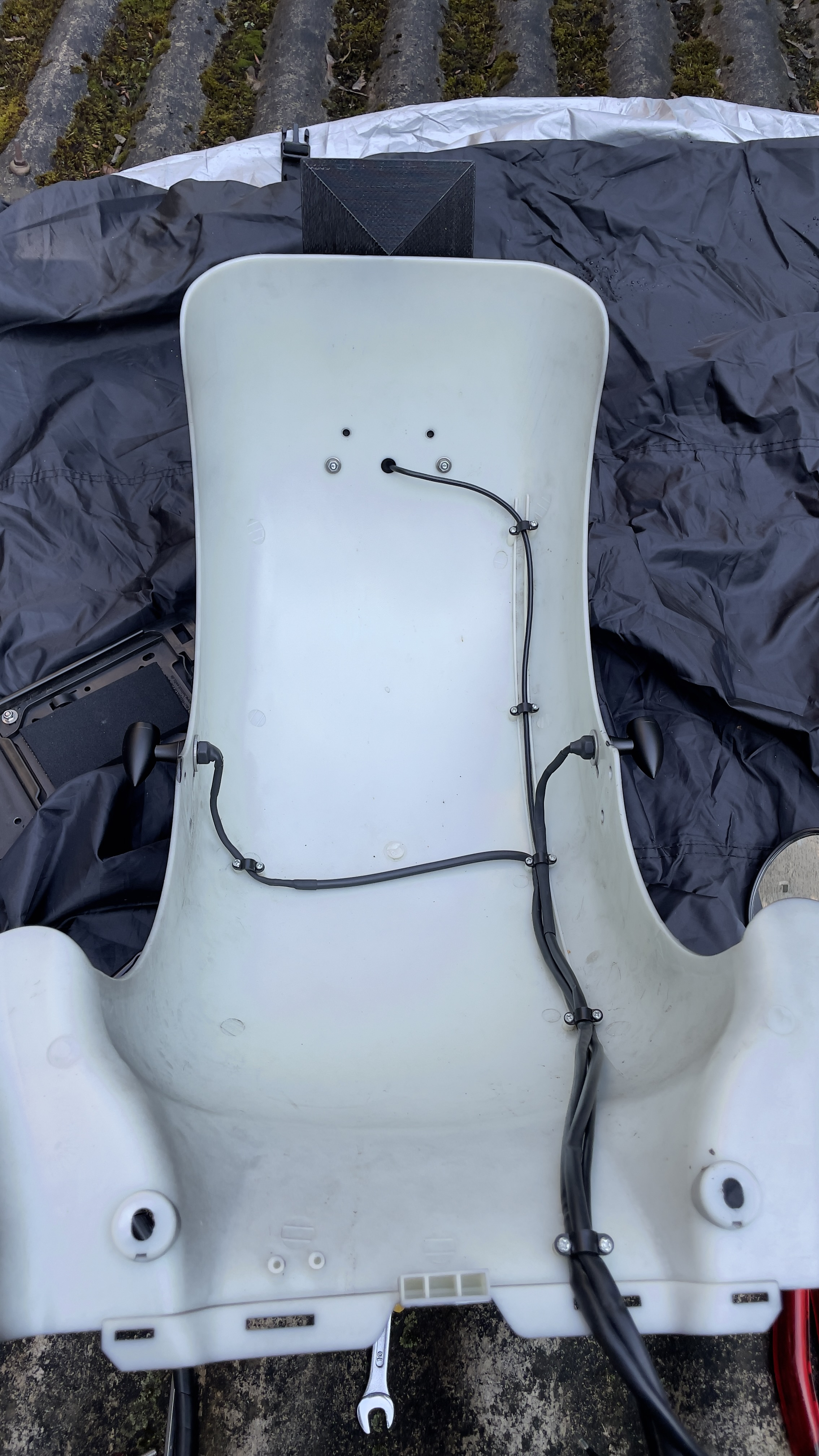 Der gedruckte Kennzeichenhalter passt. In dem Atemzug gleich noch mal die Kabel "schön" gemacht. Da die Karre ja eh dann wieder zerlegt war gleich mal um die Anschlüsse im Batteriekasten gekümmert