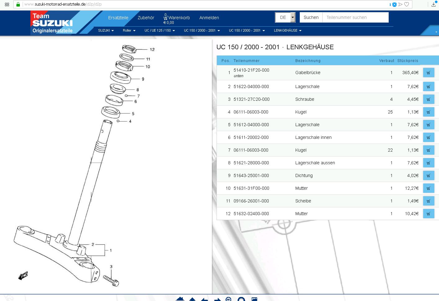 Nachdem ich die Lenkkopflager für den SUZUKI UC 125 EPICURO (2001) nun komplett neu dort bestellt habe,