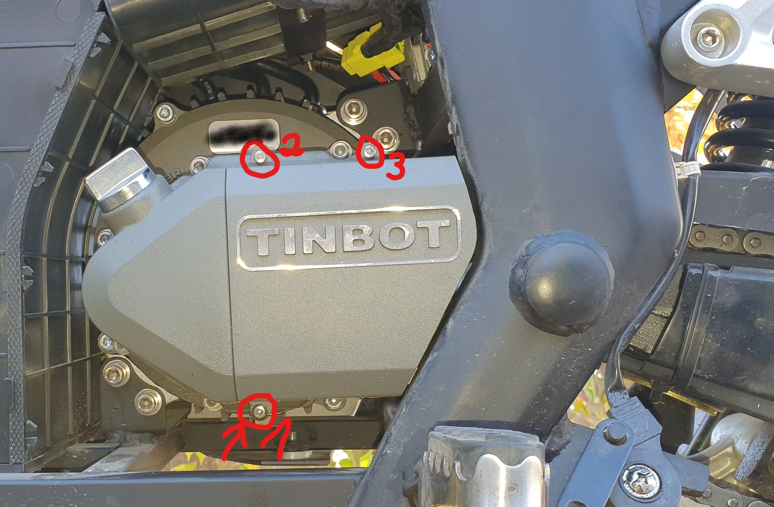 Die Abdeckung des Ritzel sind 2 Inbus-Schrauben oben, eine unten.