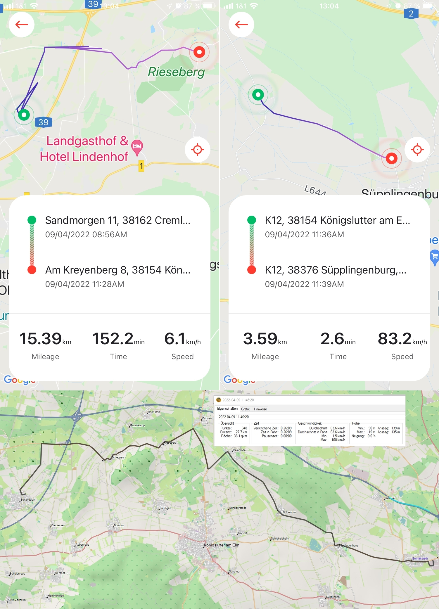 Parallel habe ich die Fahrt auch mit meinem GPS von GA...N aufgezeichnet, der Rückenwind hat dabei ordentlich unterstützt.