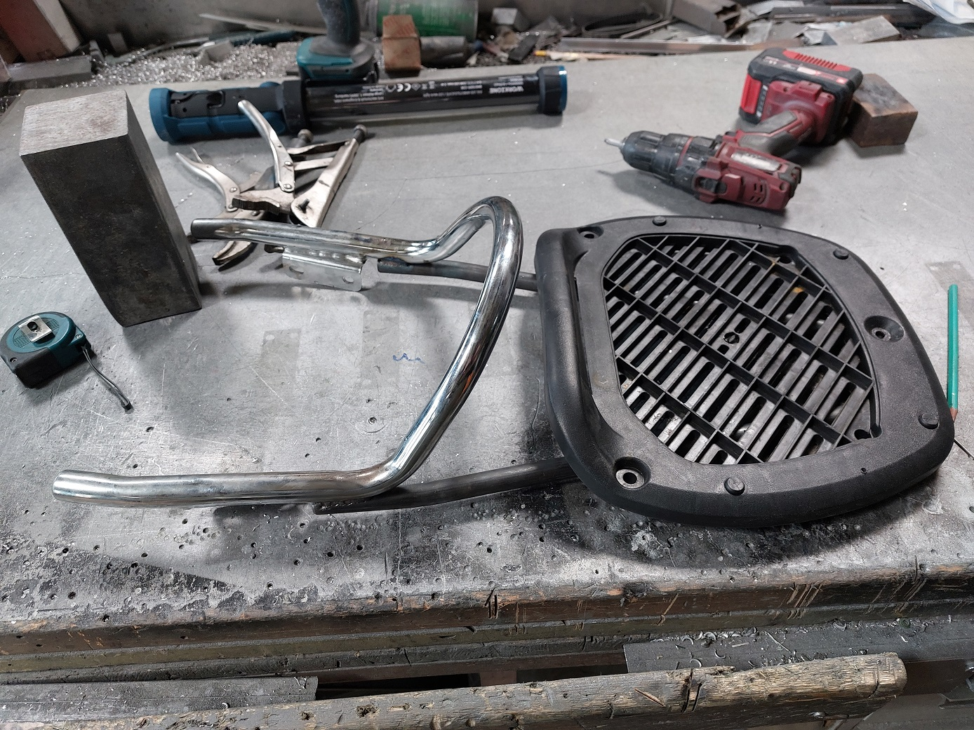 Anbei noch ein paar Bilder vom Umbau der Halterung für das Suitcase. Habe den Original Sattelbügel genommen und da das neue Gestänge passend gebogen und drangeschweisst. Natürlich dann in Alubond Pulverbeschichtet. Soll Alu Eloxiert imitieren.20230422_102556.jpg