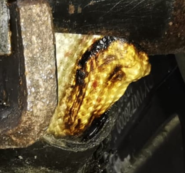 There is a 'hole' in the rear axle where the phase cables go in, I presume this is a route for road spray and dust to pass down the route of the phase cables and make a mess in there.