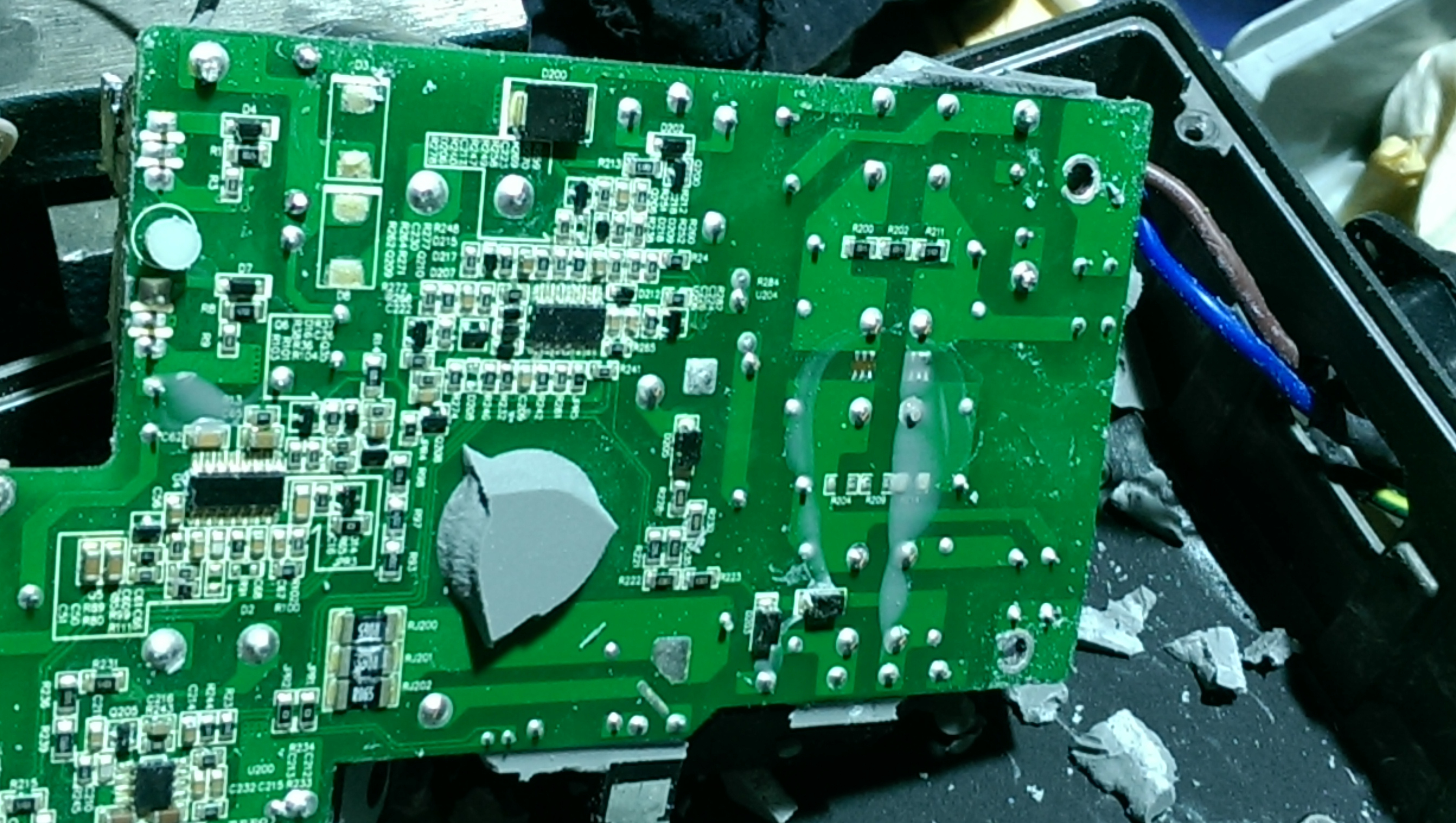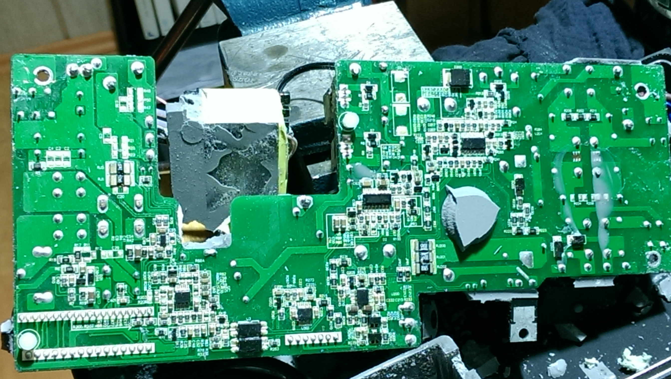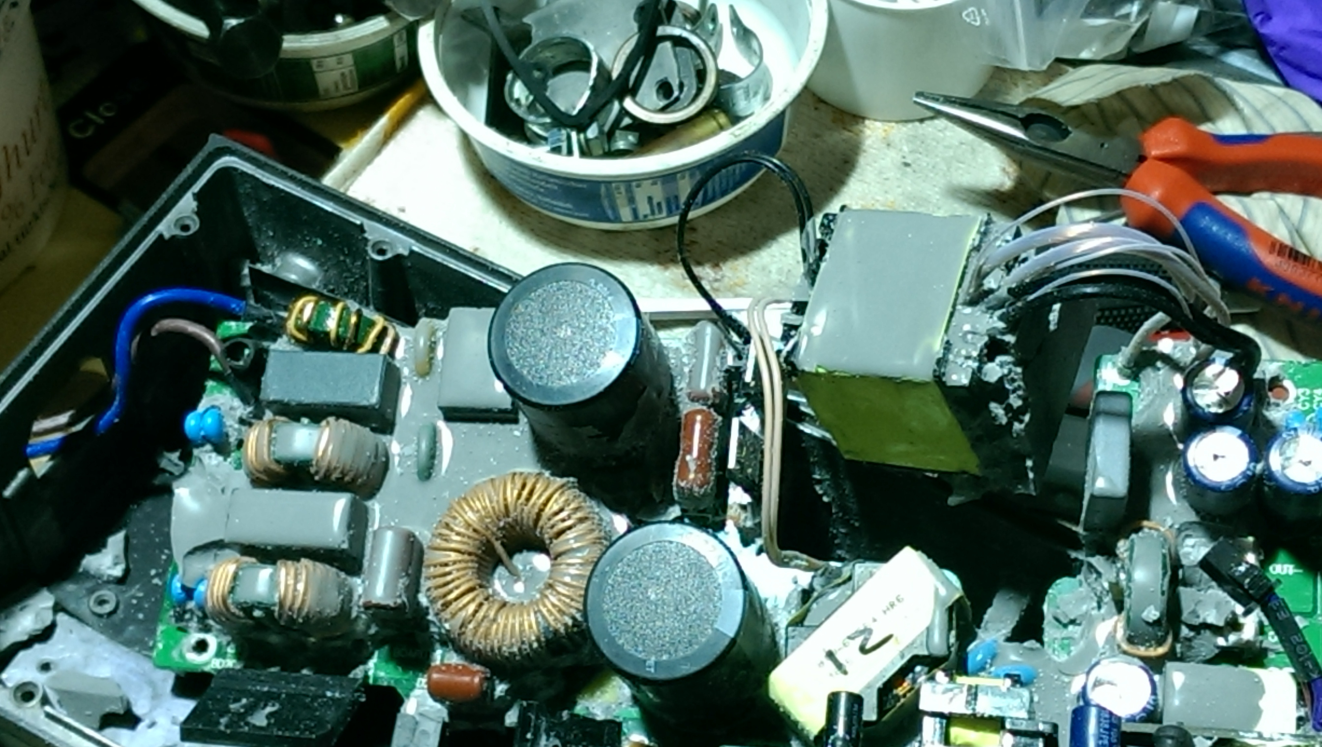 Es gibt noch einen weiteren "Verdächtigen", der Halbleiter, der per Klammer am dicken Transformator angeklemmt ist