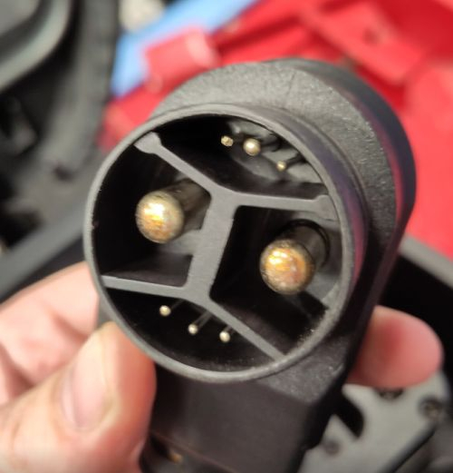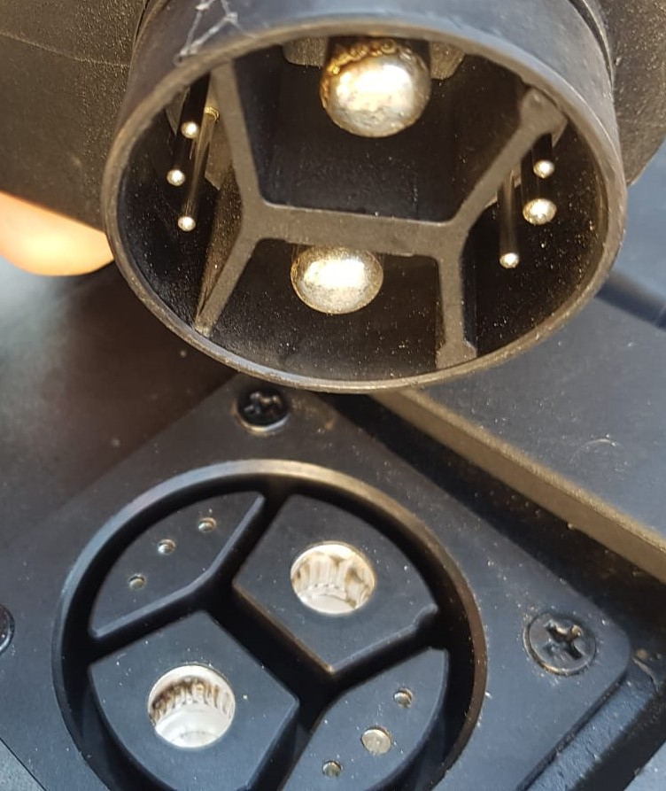 hier ein Bild der Steckverbindung. Wo ich es mir nochmal genauer und auch die Gegenseite angesehen habe, könnte es durch versehentliches fahren mit nicht ganz eingestecktem Stecker kommen.