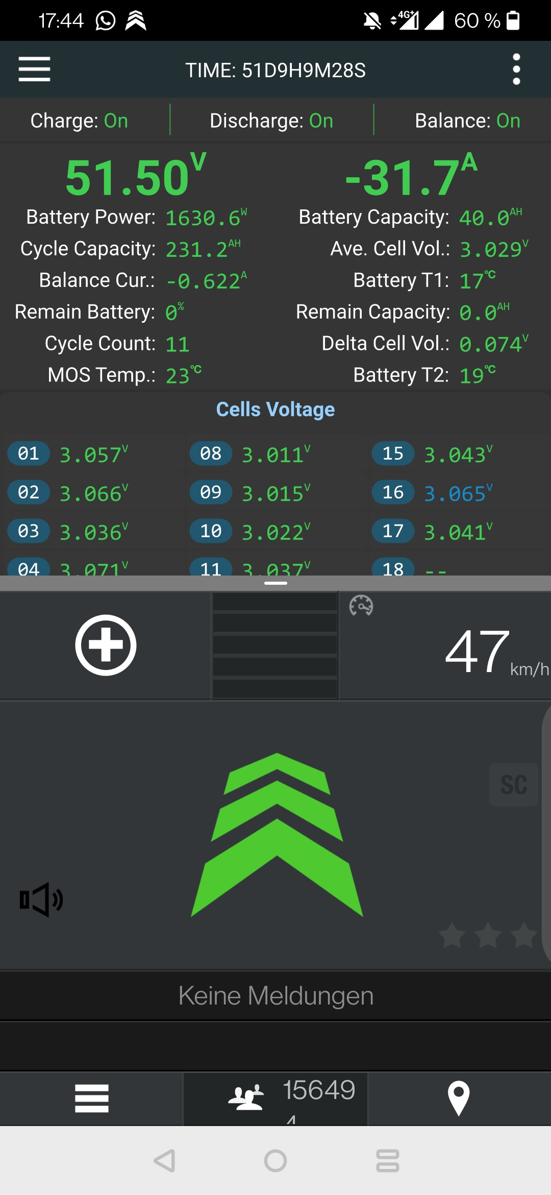 Normal könnte ich die Zellen noch etwas weiter runterfahren, aber für den täglichen Weg ist es ausreichend. Der Screenshot ist 2 Sekunden nach dem anstecken vom LG.