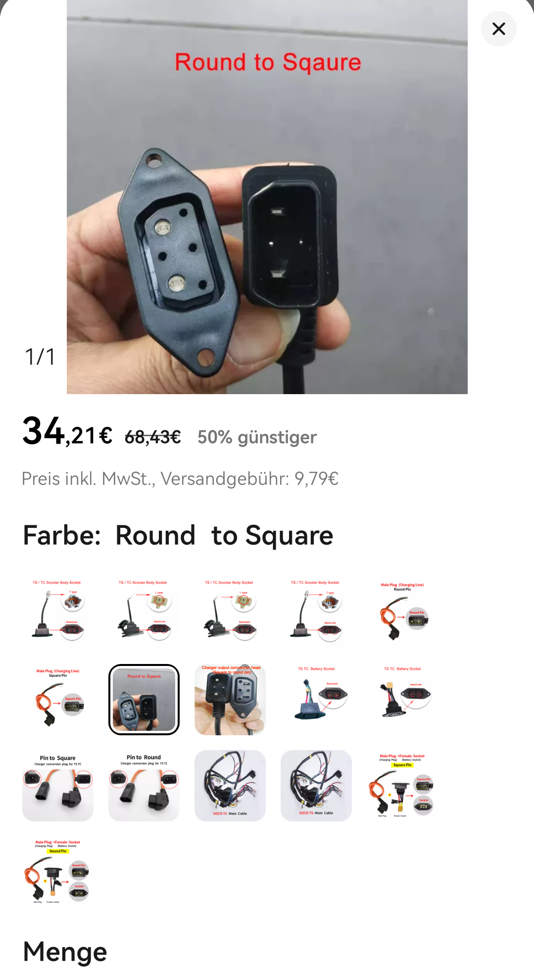Ladebuchse ist Rund ! Gibt es ein Adapterstück dafür?
