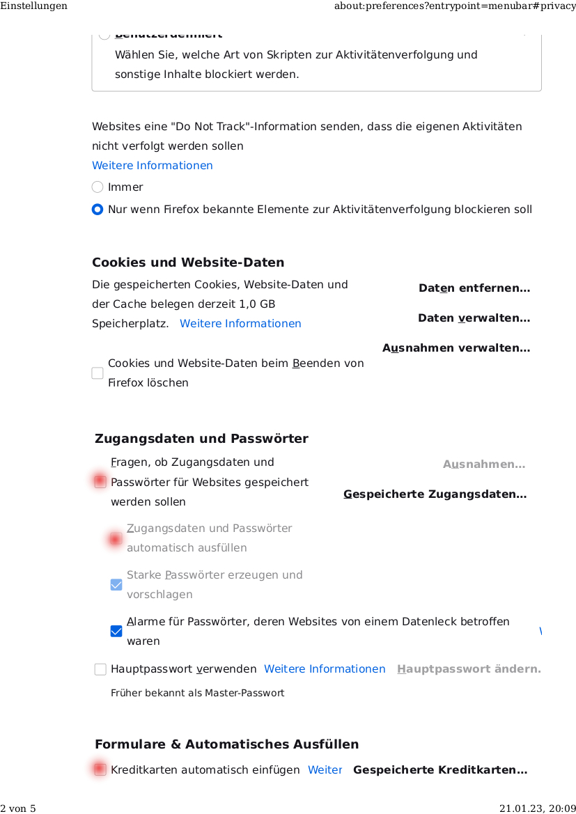 Seite 2 (rot) = unautorisierte Weiterleitung meiner Daten an Mozilla (Firefox)