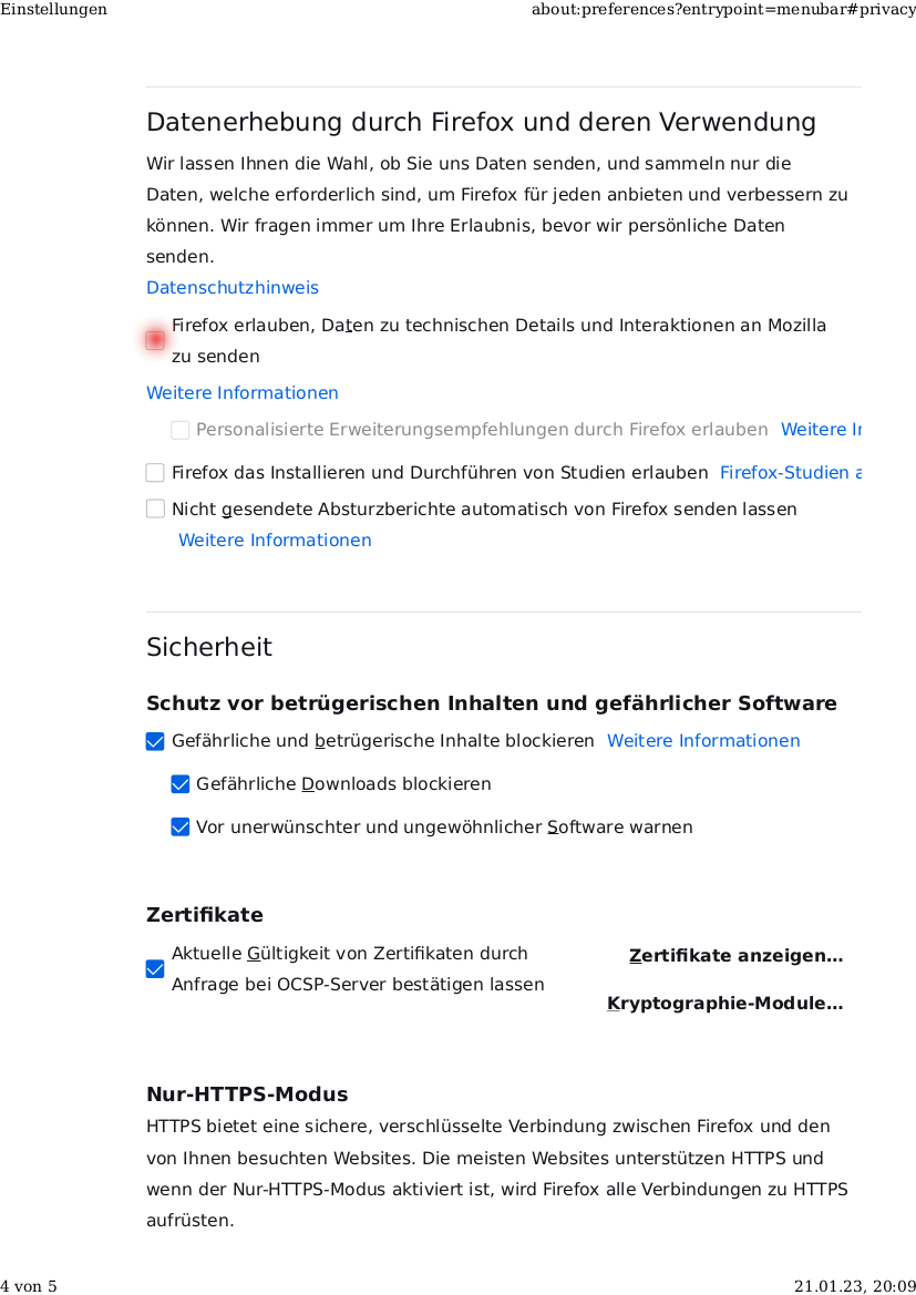 Also, den Punkt "Firefox erlauben, Daten zu technischen Details und Interaktionen an Mozilla zu senden" hatte ich natürlich noch NIE angeklickt...