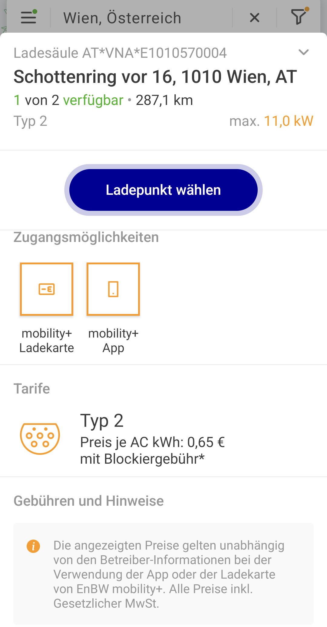 Bei den Ladestationen aus der Map muss das gehen, denn das ist der vertragliche Tarif. Ich war zwar letzte Woche in Wien, aber per Bahn. Lade dort bisher nicht, aber anderweitig in Ö, mit dem besagten Anbieter. Das war immer korrekt, völlig egal welche Ladestation. Warum sollte es in Wien anders sein? Es muss sehr viele Leute geben, die auch in Wien mit EnBW laden und das aus eigener Erfahrung bestätigen können.