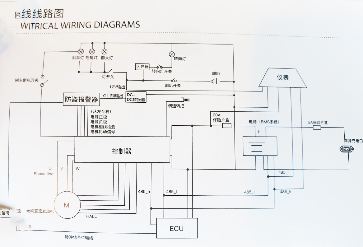 bei diesem Schaltplan laufen die beiden Leitungen 485 low und 485 high zwischen Display, (auch Akku-BMS), MotorController und einer zusätzlic einer Einheit ECU, die natürlich auch defekt sein könnte (falls das der passende Grob-Schaltplan zur TCmax wäre).
