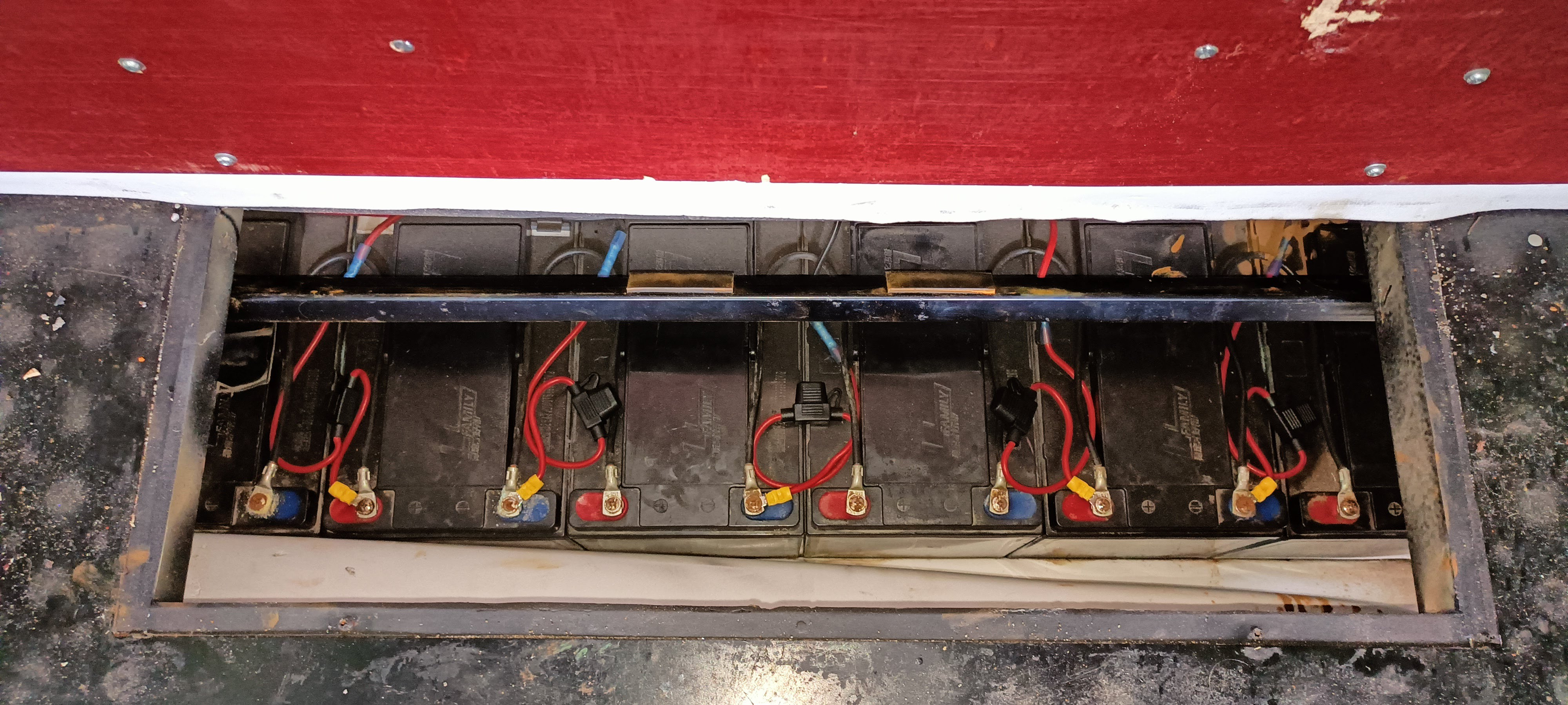 Diese Batterie Reihe zeigt auch keine Spannung... Mein Mann schaute später nach und fand einen verrosteten Kabel...evtl ist das das "einizge" Problem, aber: