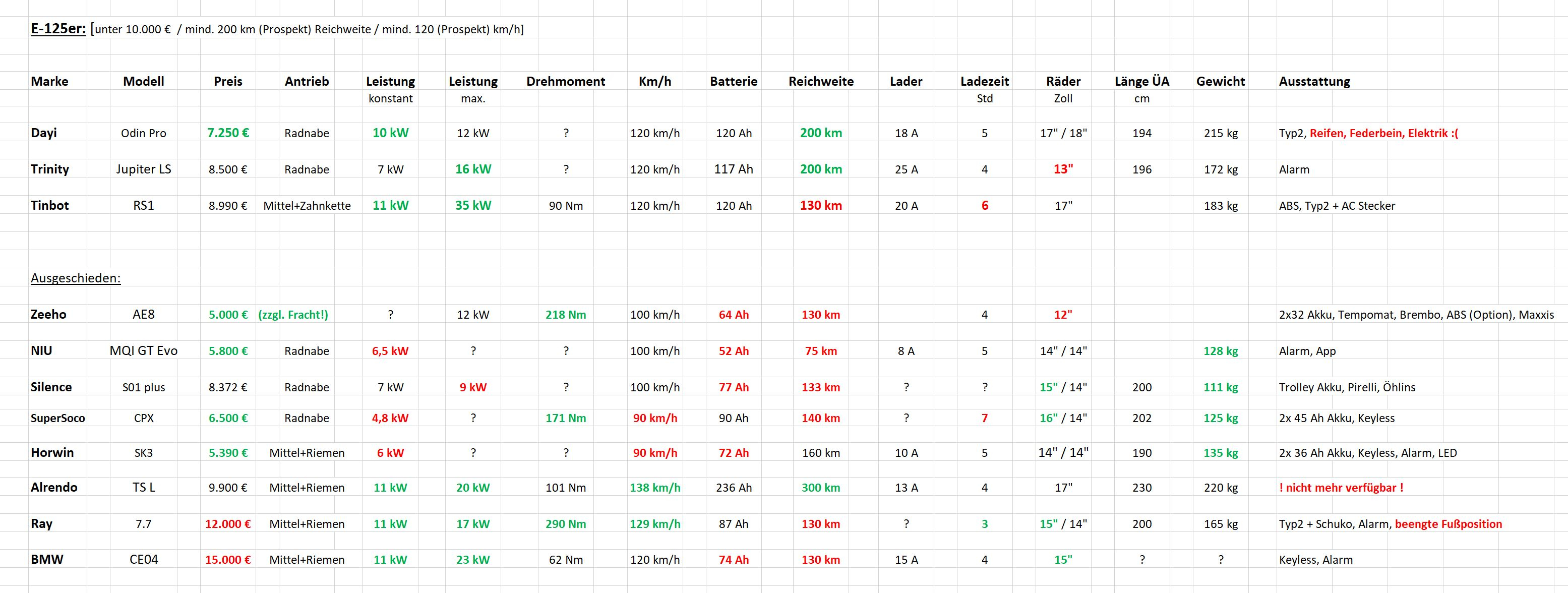 - Roller: div. L3e-Roller (80-97 km/h), ZERO SR/F