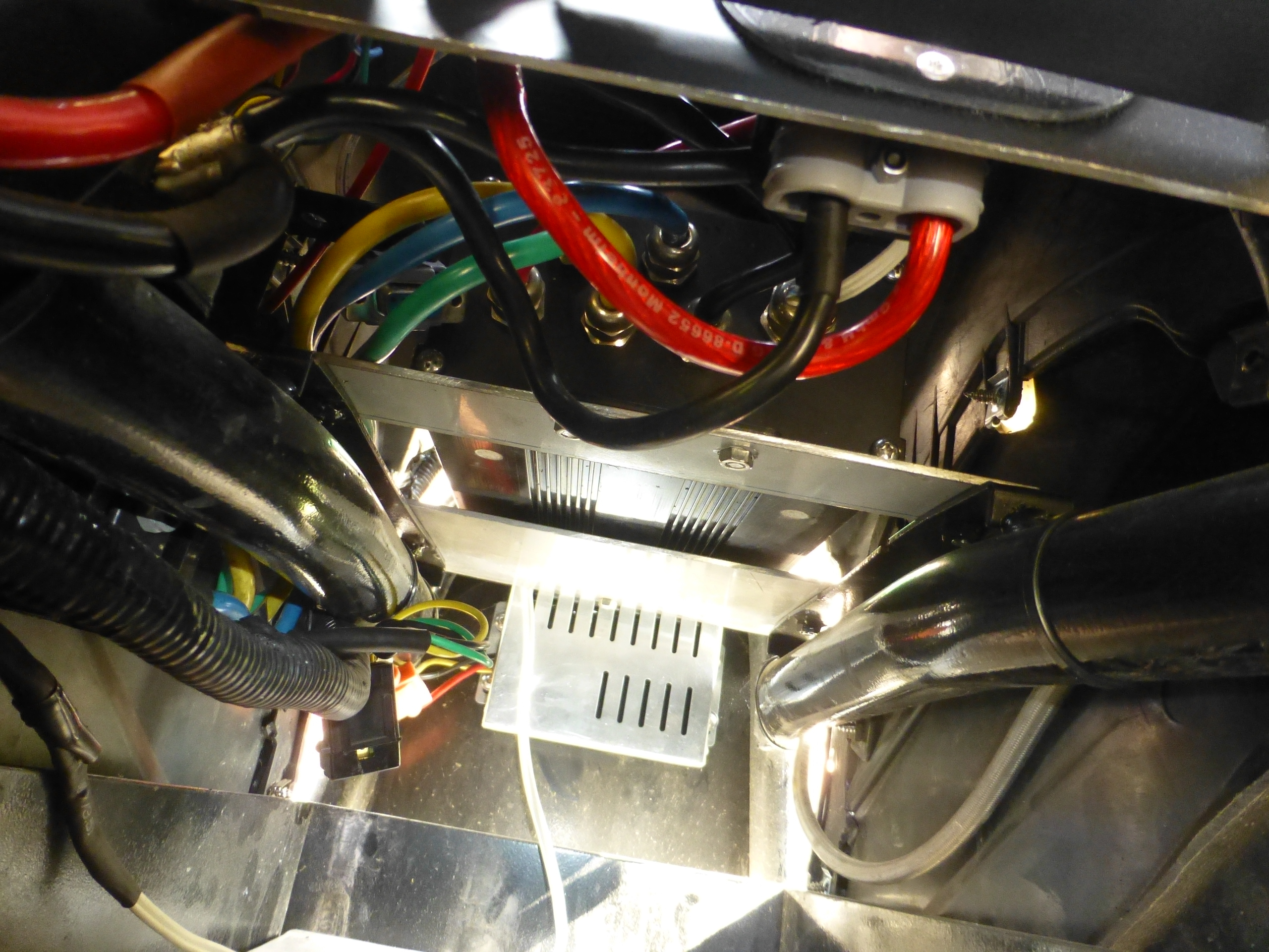 Ich kann Dir nur sagen, dass das silberne Kästchen, das senkrecht vorn überm Battriekasten prangt, der 300W DC/DC-Wandler ist, der alles mit 12V versorgt aus der Batteriespannung. Dieser Wandler war das EINZIGE elektronische Bauteil in meinem Thunder, der die kompletten 30.223 km überlebt hat