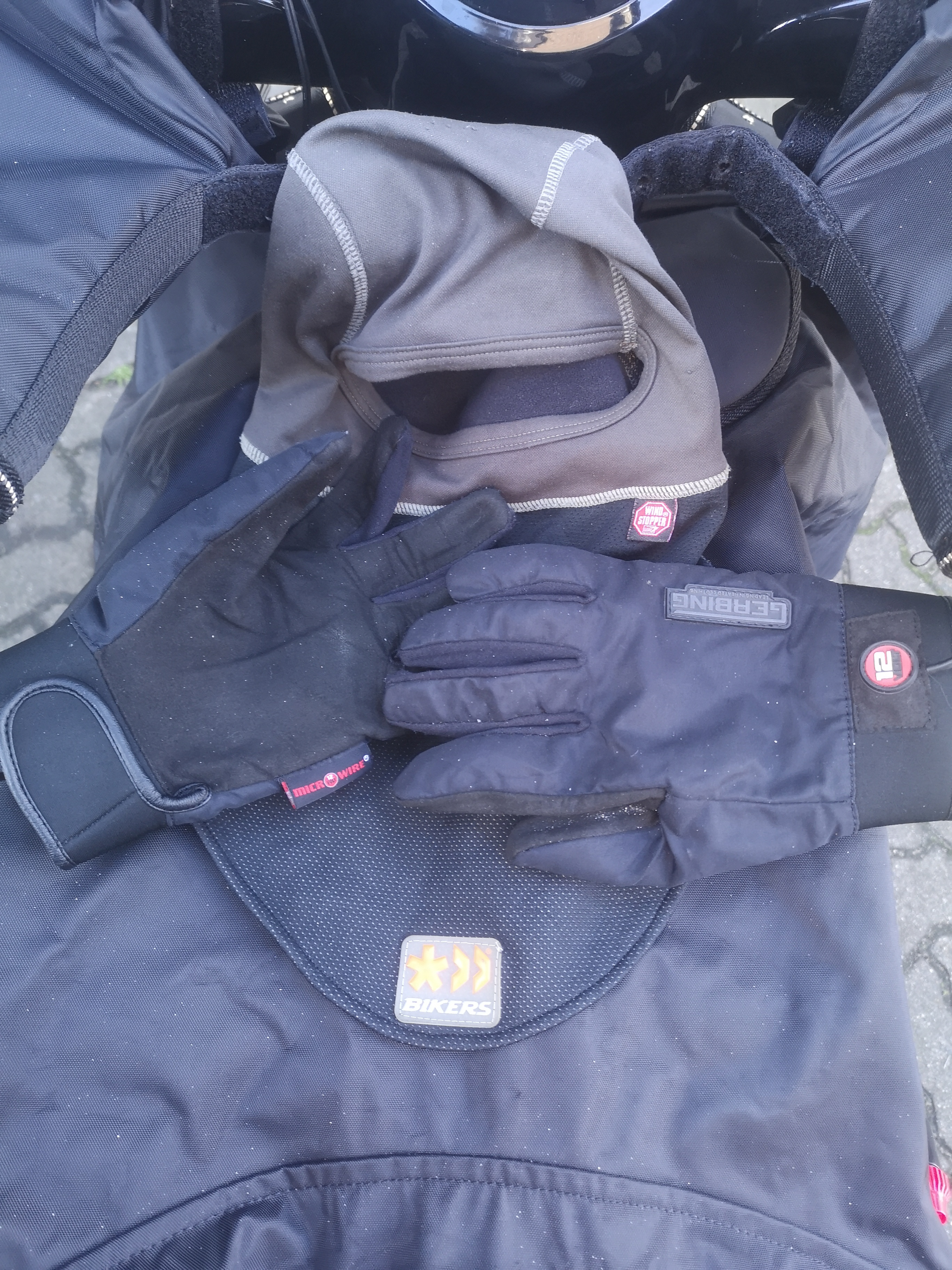 Lenkerstulpen, ORINA Heizhandschuhe, Thermoboy winterhose, Pullover und altbewährte RUKKA Jacke. Da gehts gut durch den Winter, wenn kein Salz, Schnee , Eis ist.