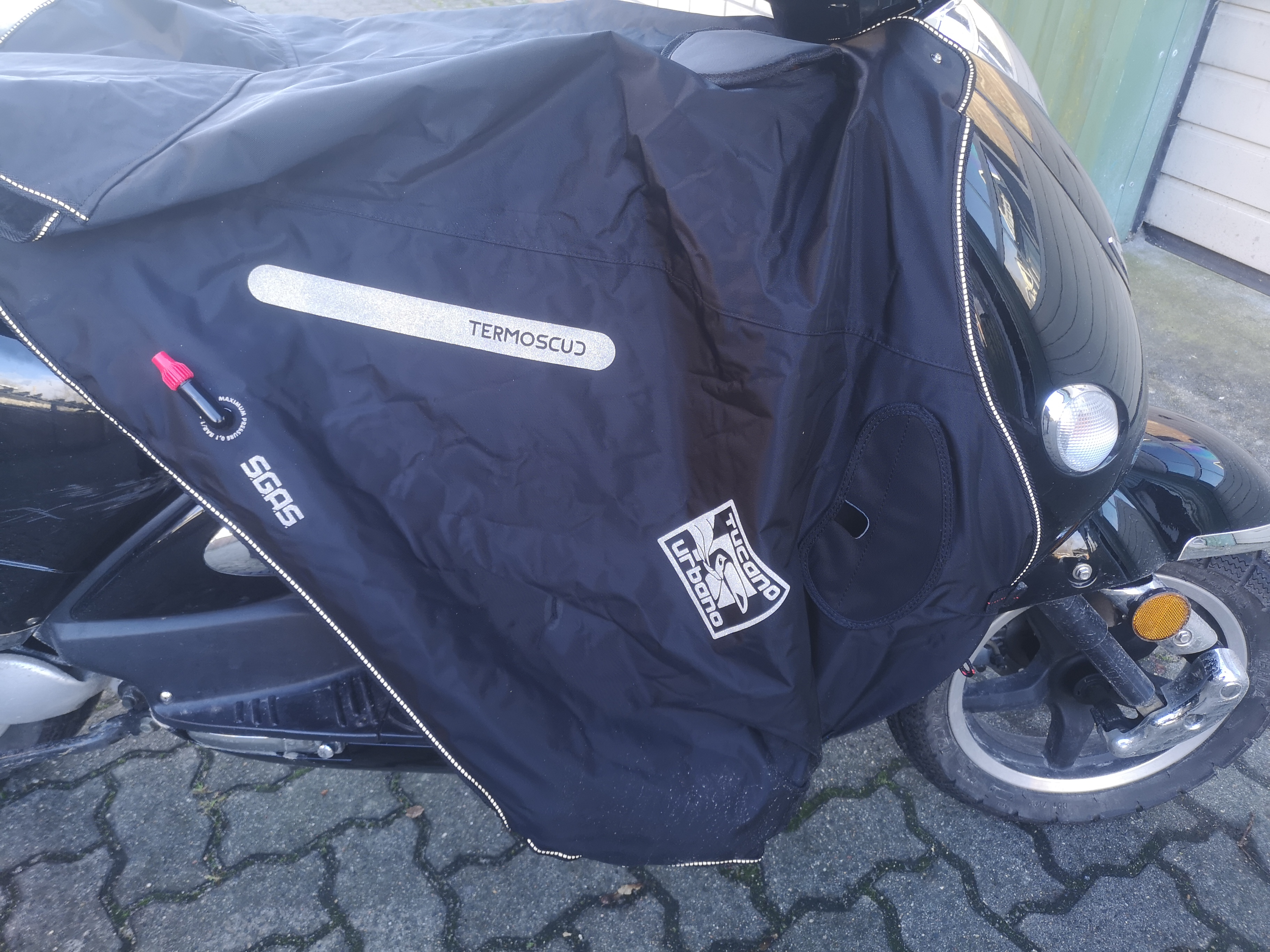 Am Ende habe ich mich für einen Beinschutz R154 N entschieden. Das Beinschild müsste bei meinem Roller etwas höher sein. So schließt der Termoscud an der Unterkante mit einem der Luftkissen am Schweller ab. Beim Anhalten versuche ich immer, das Bein nach hinten rauszustrecken, damit ich nicht hängenbleibe. Geht ganz gut. Außerdem ist die abgedeckte Öffnung für den Zündschlüssel nicht an der richtigen Stelle. Ansonsten passt es sehr gut. Es schützt sehr wirksam vor Wind, Kälte und Regen. Das Ding hat einen Latz, den man sich vor den Körper schnallt. Außerdem kann man ihn über die Sitzbank ziehen, wenn der Roller abgestellt wird. Dann bleibt der vordere Sitz weitgehend trocken. Super ist auch die große Innentasche mit Reissverschluss.