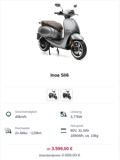 Roller: Inoa S5 Li Doppelakku ab 02/22 + NIU N-GT Ext.Range ab 08/24