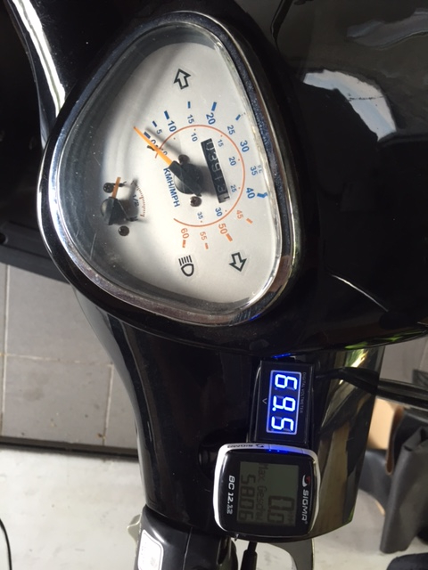 Im Laufe der Zeit geht sie dann runter auf min. 45 Km/h (der Tacho zeigt dabei 50-51 Km/h an).