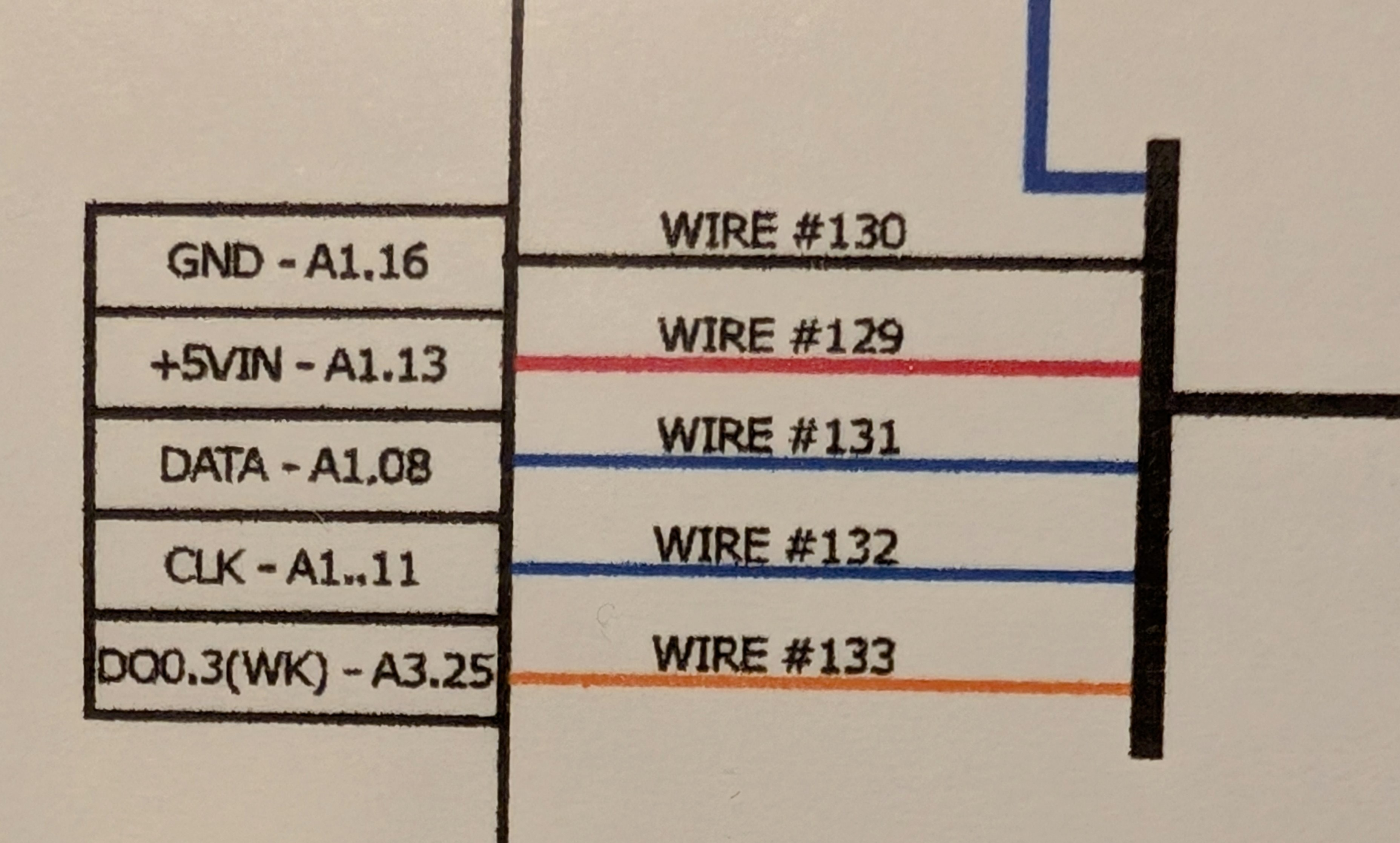 - das zweite (weißer Stecker) hat 6 Leitungen und davon gehen 5 zum MDB und eines zur ECU.