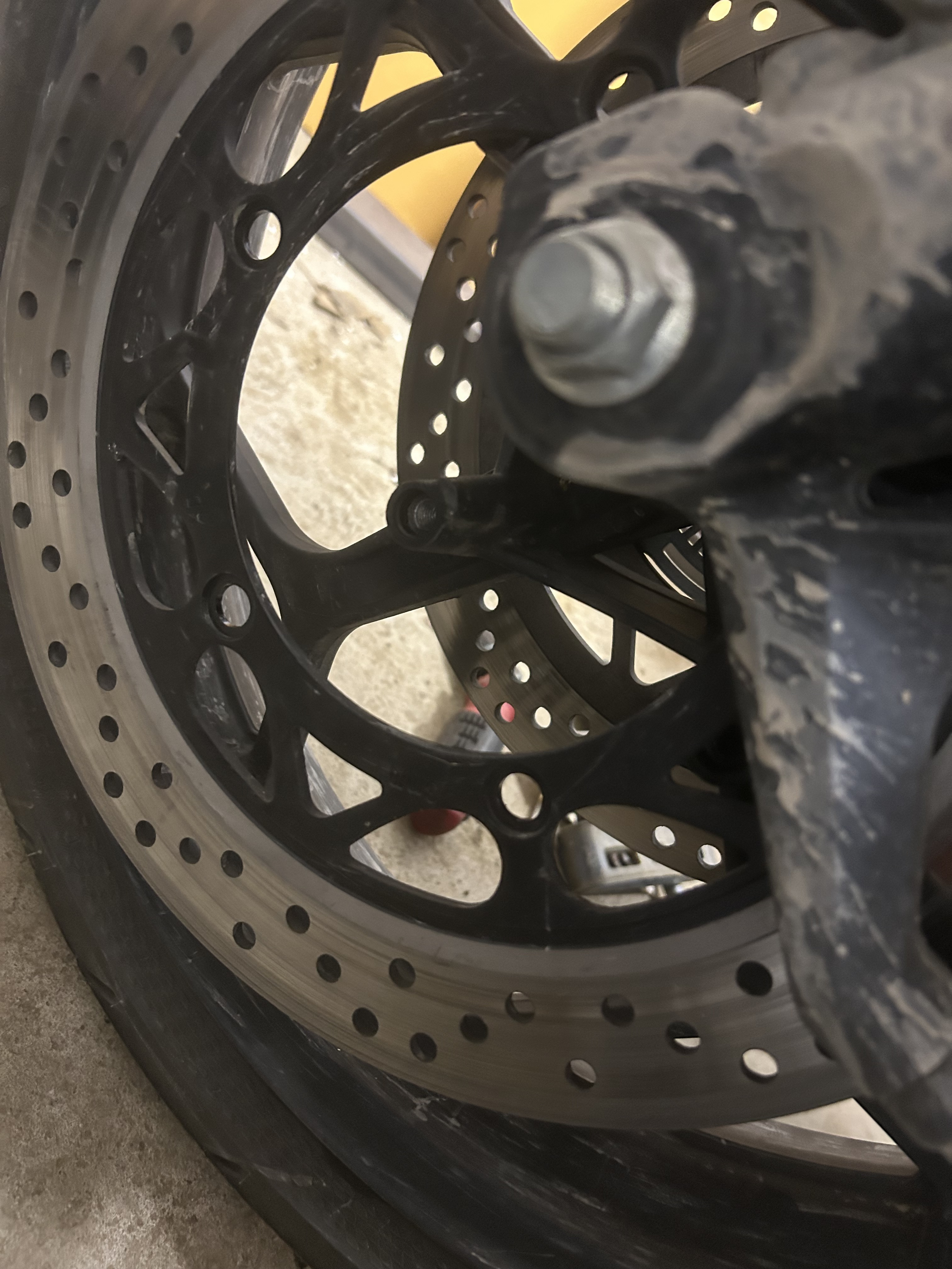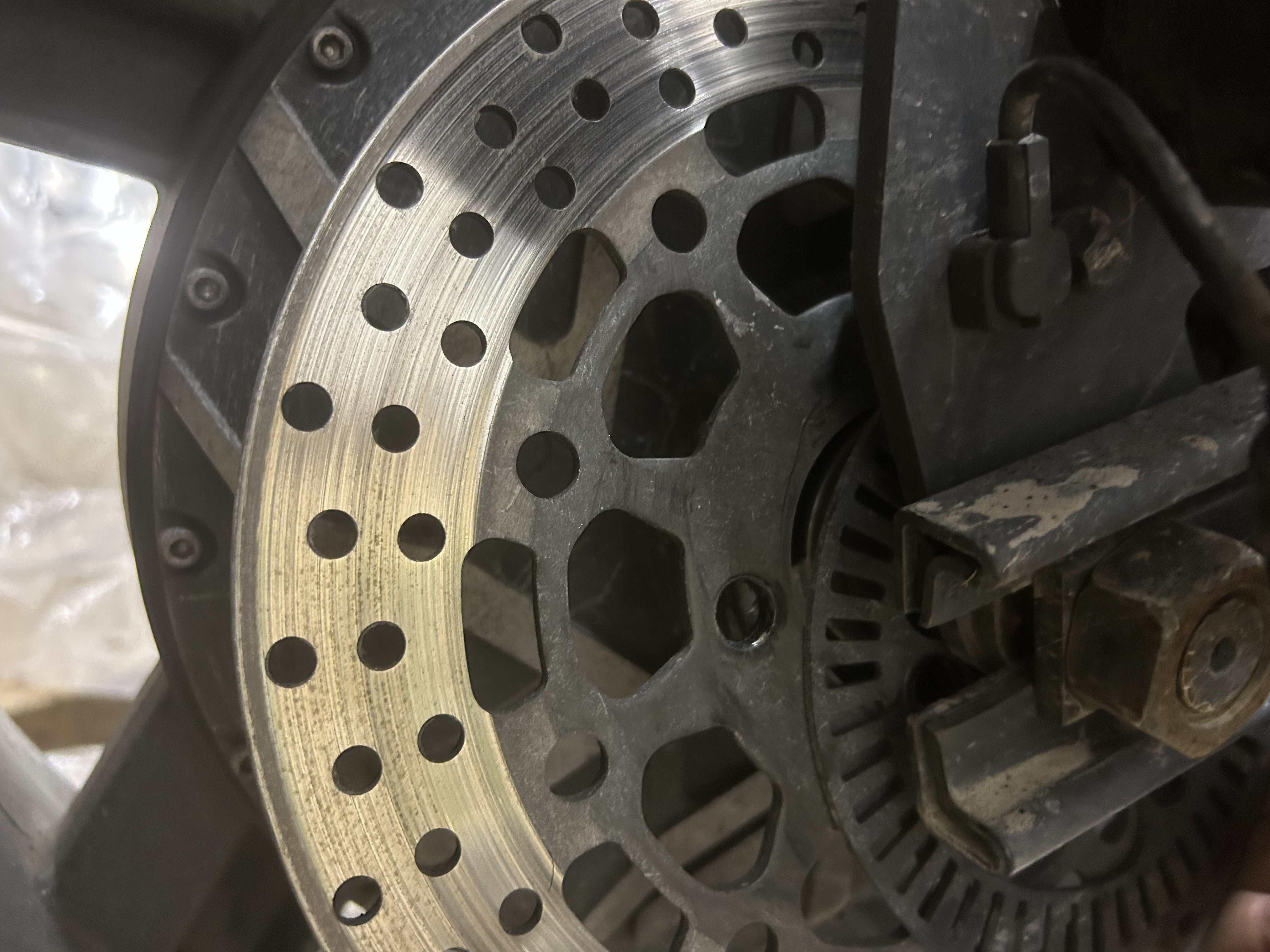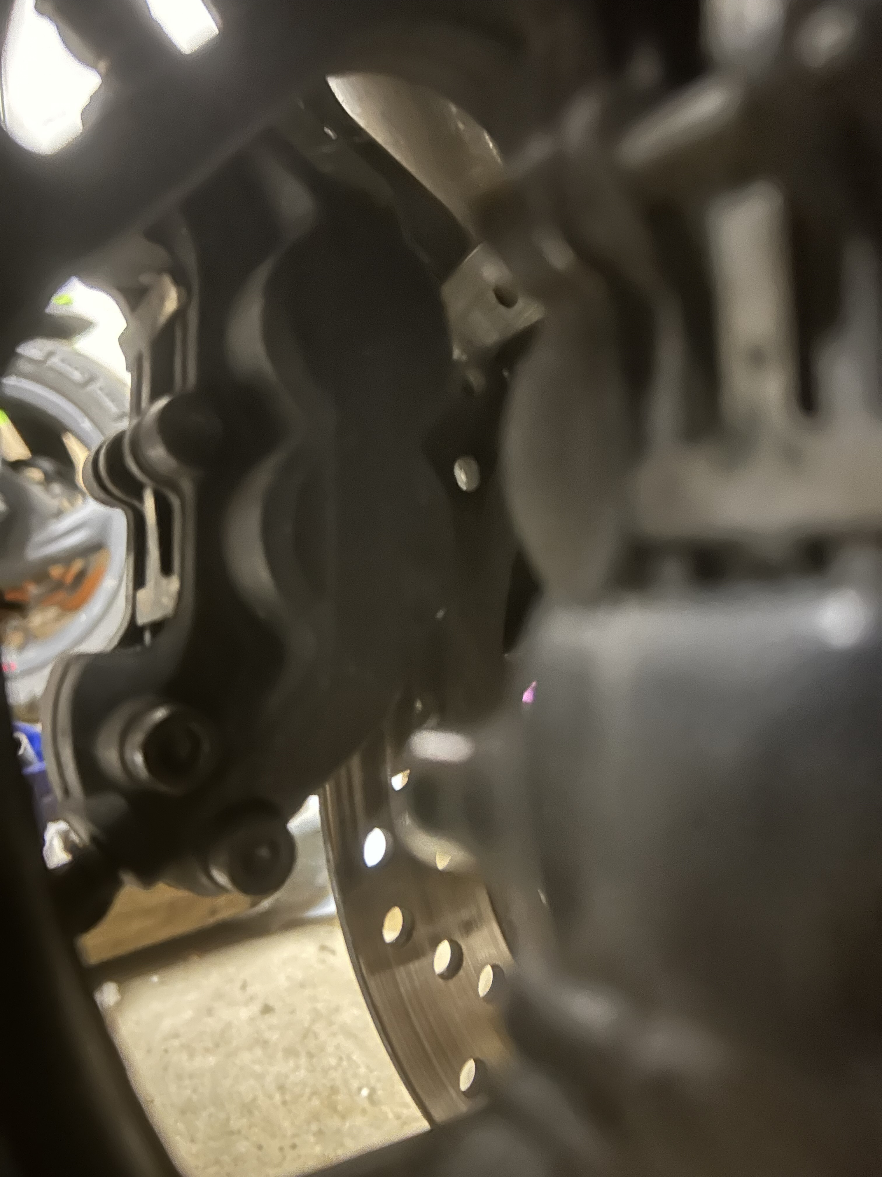 Vorne habe ich sie noch nicht ausgebaut bekommen. Kennt jemand den Bremssattel? Ich denke das ich in der Mitte die Schraube lösen muss. Die ist aber total fest und ich glaube ich habe den Inbussschlüssel fast überdreht. …