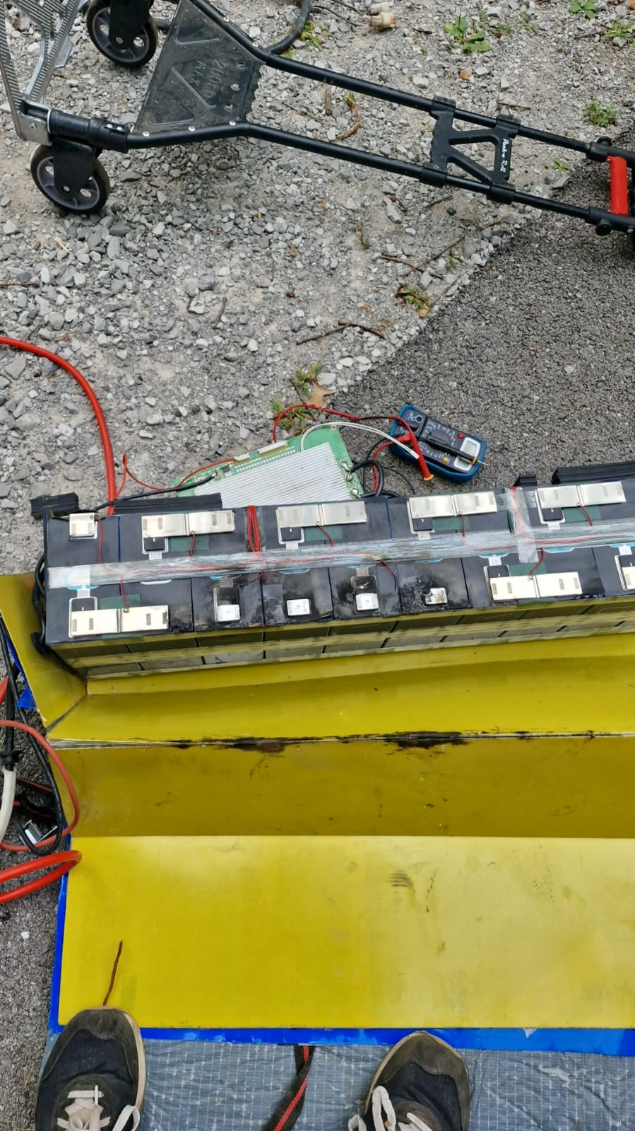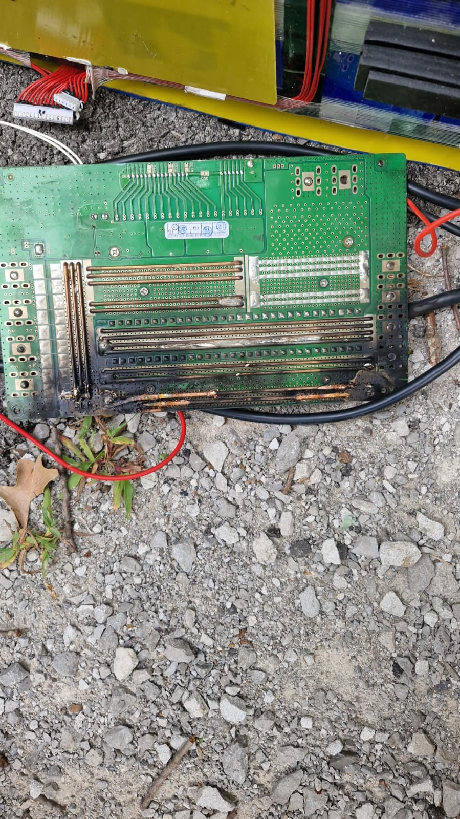 Ich wollte dann ein neues BMS eingebaut haben, der Typ hat auch eins bestellt, aber dann den Akku (wahrscheinlich durch einen Kurzschluss) ziemlich zerstört. Zwei Zellenverbinder waren abgerissen und die (alte) BMS-Platine war ausgeglüht.