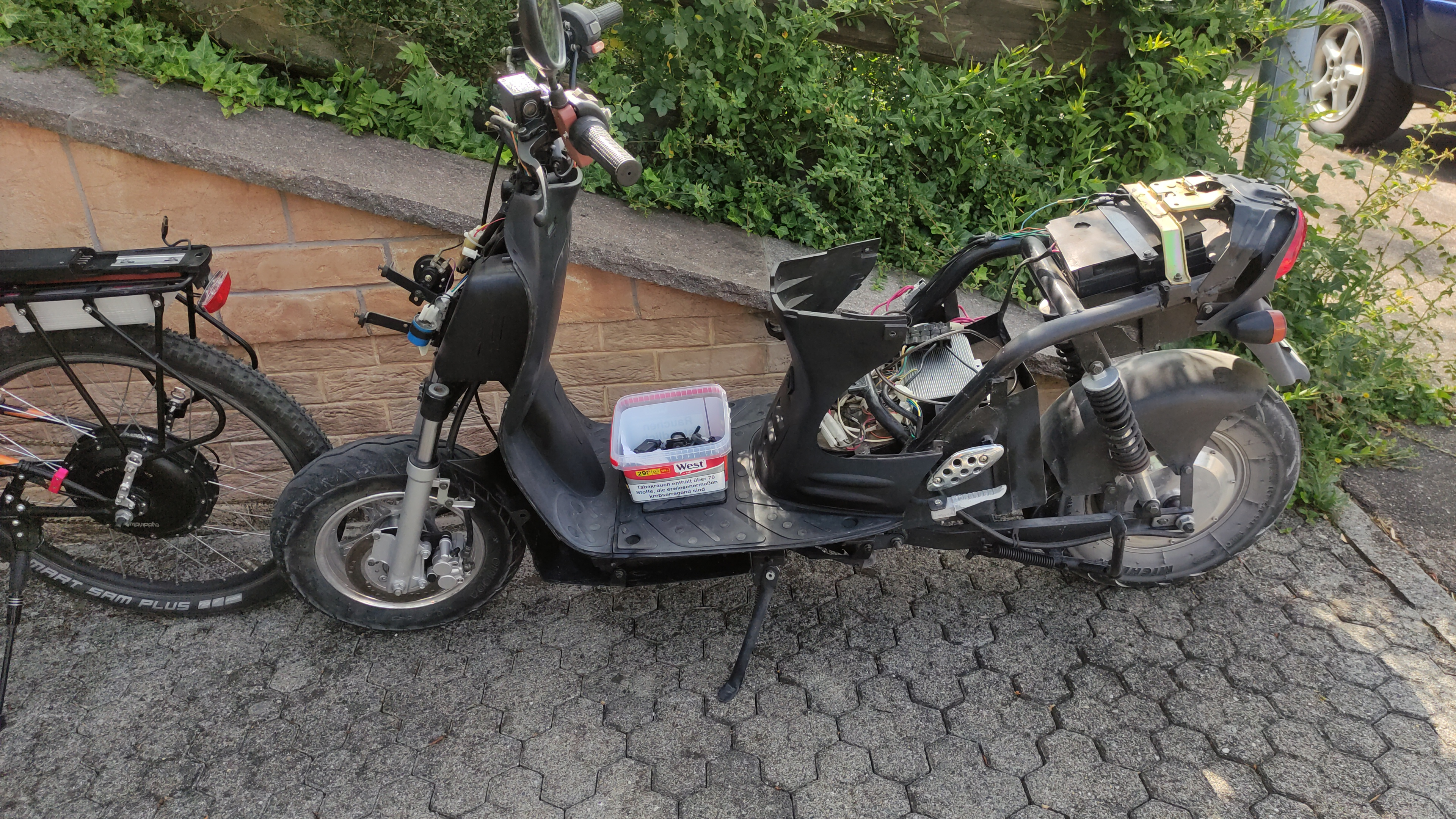 Nun kann man beliebig darüber streiten, ob die Preise damals / heute angemessen waren und wie es um die Qualität aussieht. Die war nach meinem Dafürhalten damals genauso mies wie heute, Ausnahmen gab und gibt es natürlich. Der Zokes hatte einen "angemessenen" Preis für das, was dort abgeliefert wurde, und da passt auch die Relation zu einem heutigen 2500€-Roller. Der Innoscooter mag zu teuer erscheinen aus heutiger Sicht, allerdings gab es ein Lager mit Fahrzeugen und Ersatzteilen (m.E. ohne Kredit aufgebaut) und auch lange Zeit einen Ersatzteilservice. Auch der erste Lipo-Roller mit einer Akkukonfektionierung in DE wurde dort angeboten, und auch Kisten mit mehr als 45km/h kamen erstmalig von dort. Für das Geld wurde also Pionierarbeit geleistet. Da wurden auch Testroller anderer Hersteller gekauft (!) und geprüft, ob man die hier anbieten kann. Irgendwo habe ich noch Mailwechsel mit dem Eigentümer herumliegen, weil der auch mal die Ahamani Swap getestet hatte.
