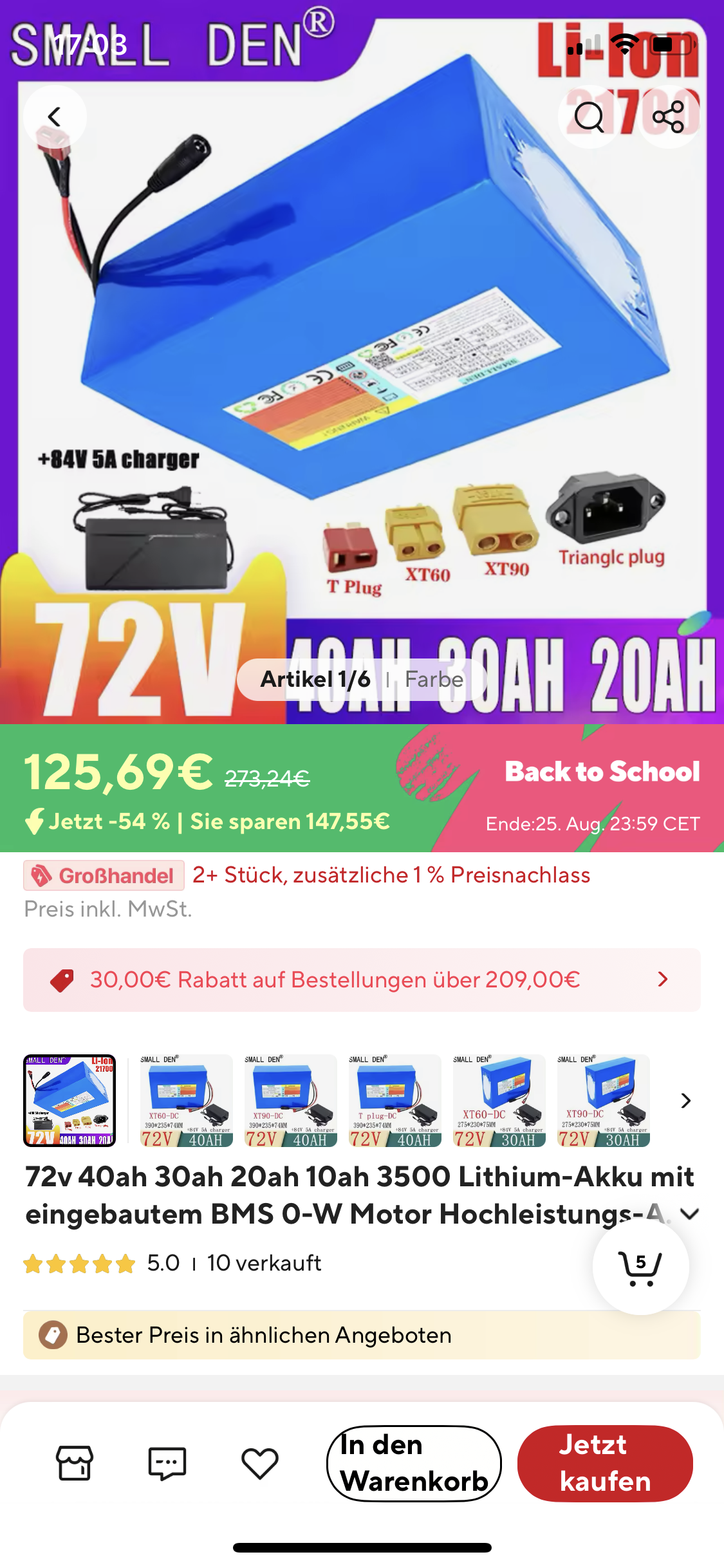 Ich möchte jetzt einen 60V 30ah mit 17s und dem Stecker den ich eine Seite davor gepostet habe. bitte nochmals um Hilfe!