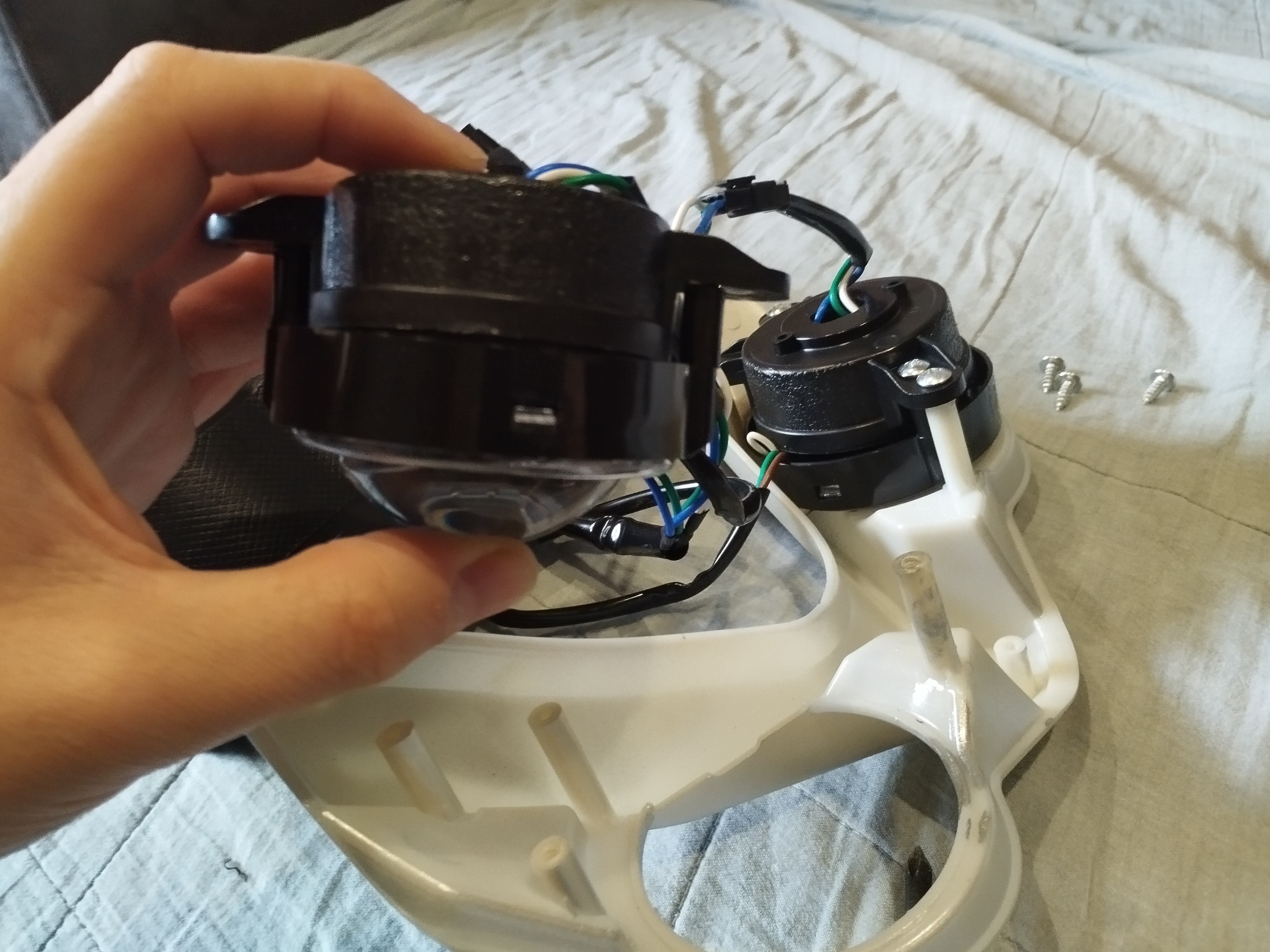 Dort halte ich nur die Dose vom Hauptscheinwerfer und dessen Platine in der Hand.
