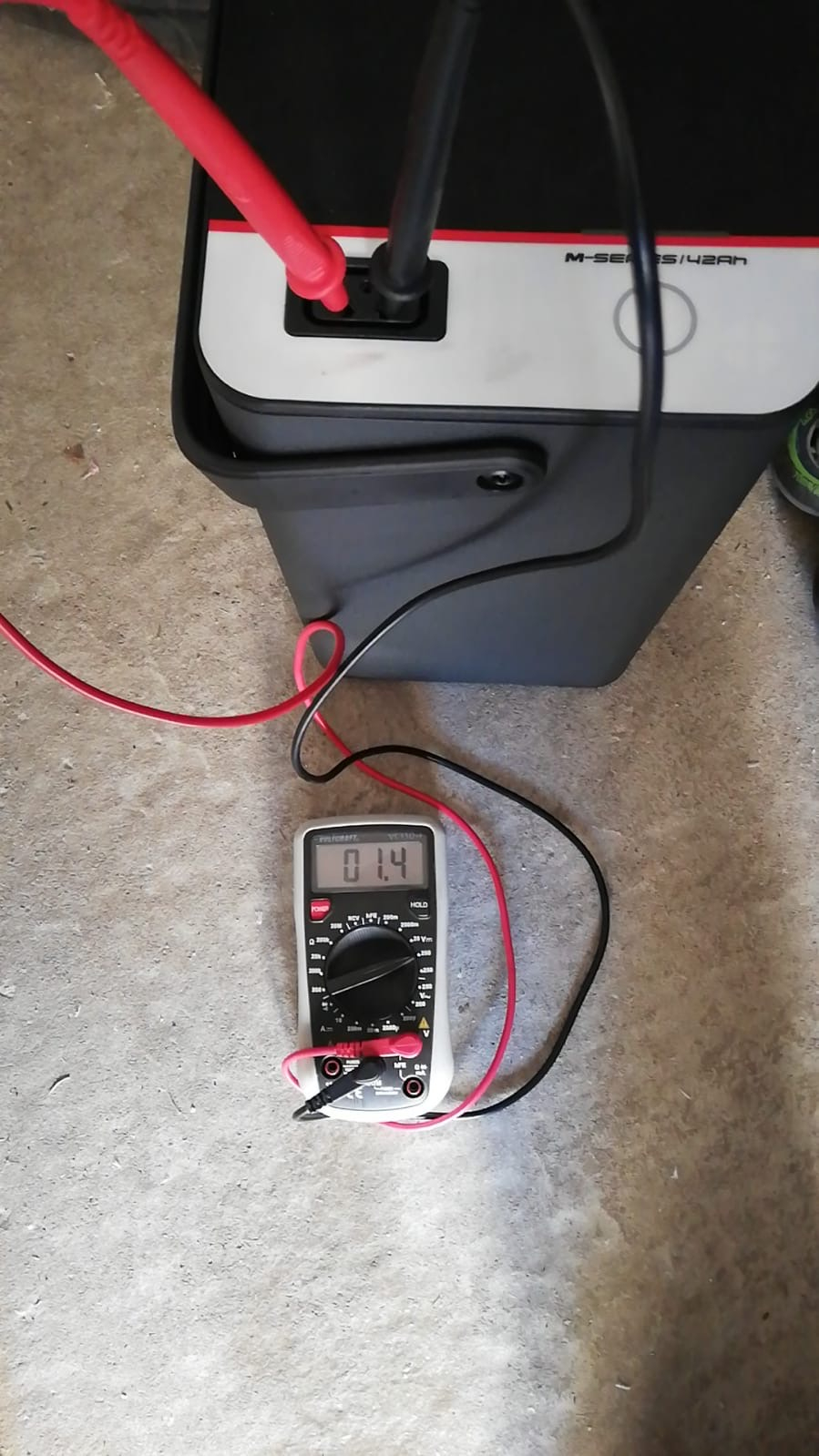 Masse (B-) und Plus (B+) haben 35,34 Volt