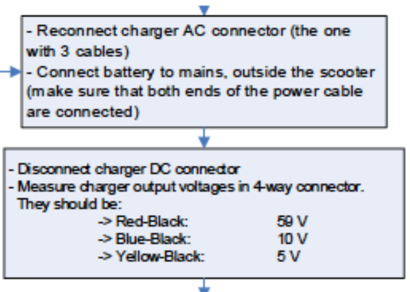 Nach meinem Verständnis habe ich das Meanwell mit "Blue-Black-Yellow" vom BMS getrennt und damit das "Dimming" verhindert. Am abgezogenen Ladeschützstecker liegen 59V an, am Stecker zum BMS liegen die geforderten 5V und 10V an.