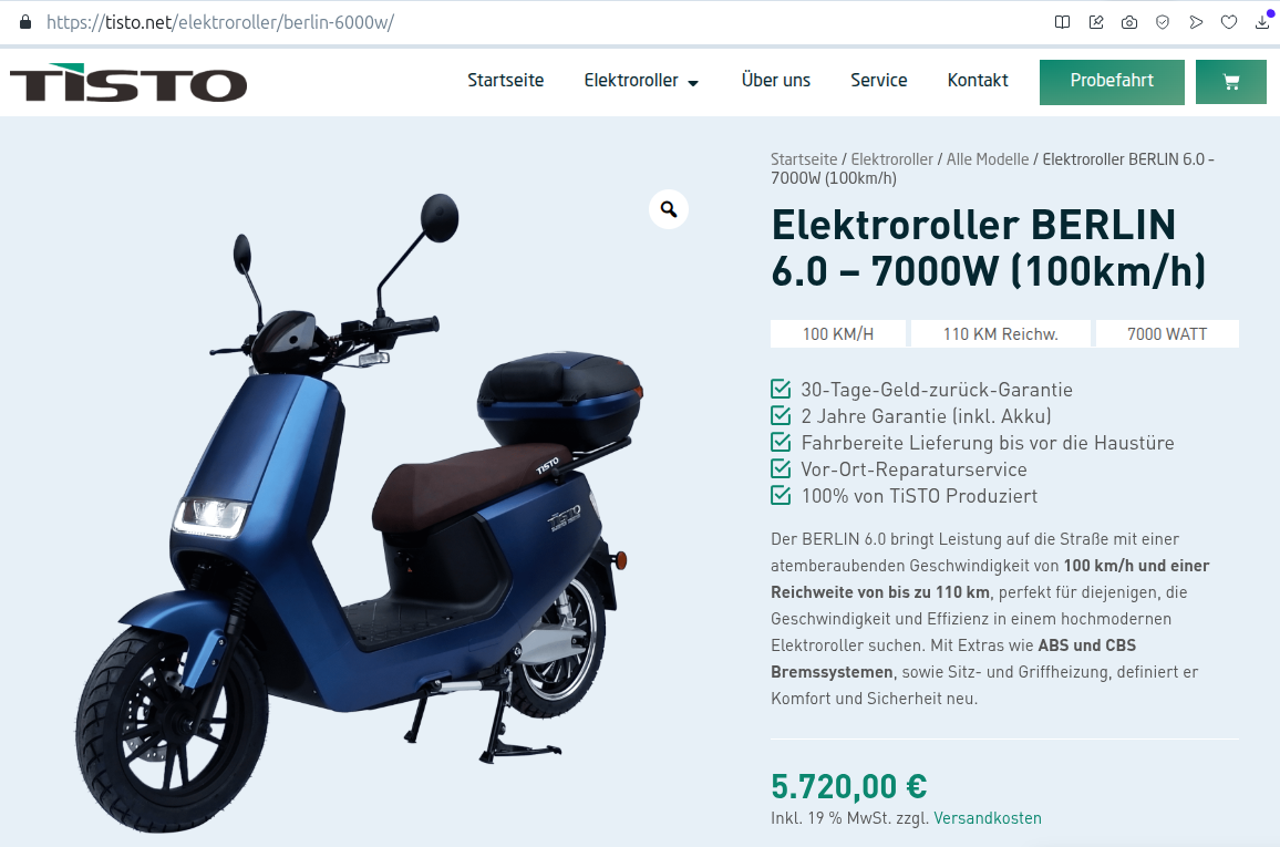 Also, ich würde mir für weniger Geld da entweder den Tinbot F8 oder baugleichen Next Mojito kaufen. Vorteil von dem: satte 8 kWh Akkukapazität und mit 5.300 € (allerdings ohne Fracht) trotzdem noch günstiger als der Berlin.