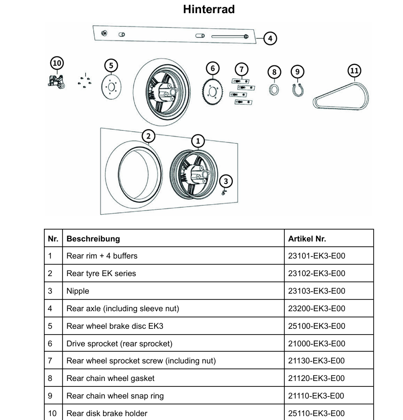 Man muss das Rad nach vorne schieben und die Kette vom Kettenrad abnehmen. Das Kettenrad (wohl das was du Krone nennst) und die Bremsscheibe bleiben am Hinterrad und die Kette bleibt am Roller. Sie muss auch nicht geöffnet werden.Giulius77 hat geschrieben: Do 26. Jun 2025, 07:50 Hallo Markus, danke für die Erklärung. Meinst du, man muss Krone, Kette etc. nicht abnehmen, sondern einfach die richtige Mutter lösen, den kompletten Stift herausziehen und dann sollte die Felge frei sein, oder? Ich würde mal meinen Freund, den Mechaniker, fragen, ob er das auch so gemacht hat.