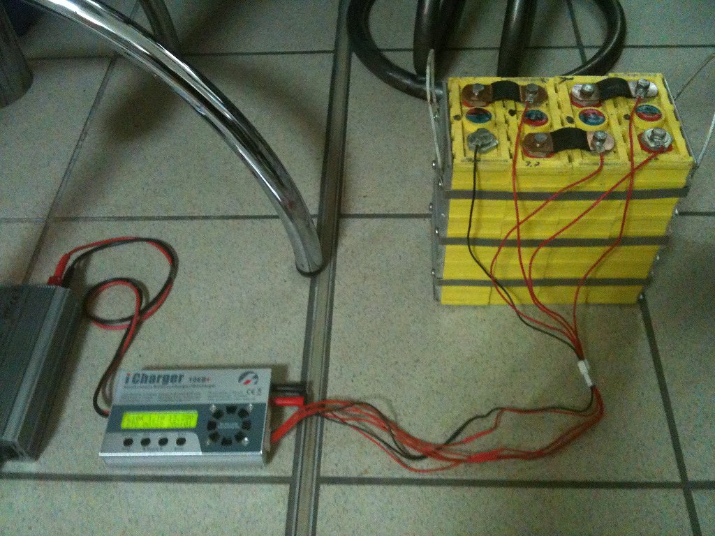 Es wurden 6x 4er Zellen verbaut. Wobei nur 4x 4er Zellen mit Alu und Bänder fixiert sind. Die restlichen 8 Zellen liegen