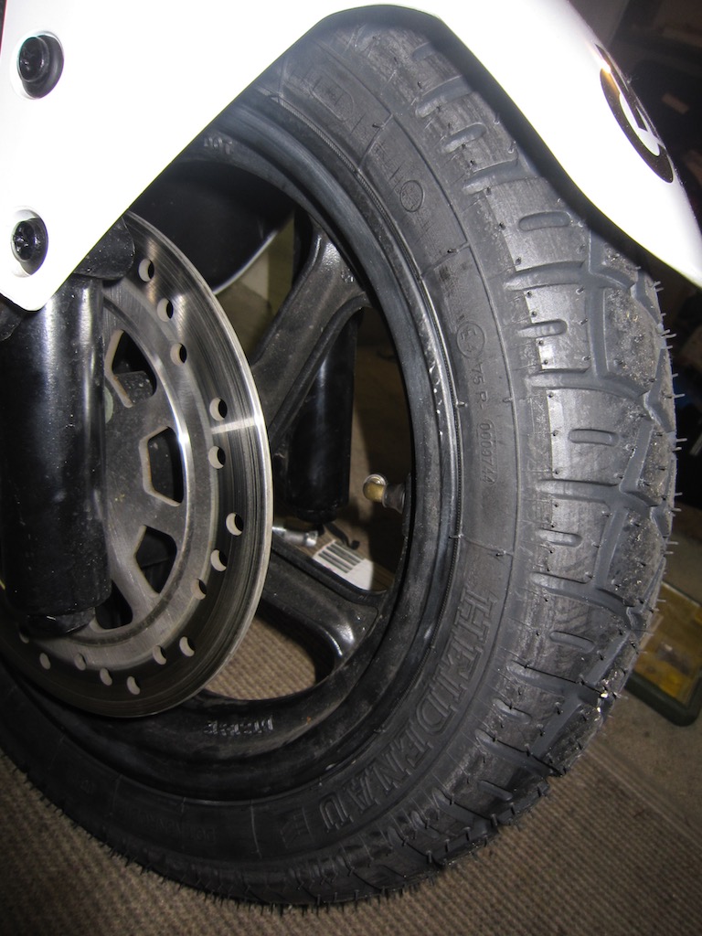 ), hier ein paar Impressionen von meinen neuen Heidenau-Reifen. Zunächst das Vorderrad (Heidenau K58 90/90-12 TL 54M):