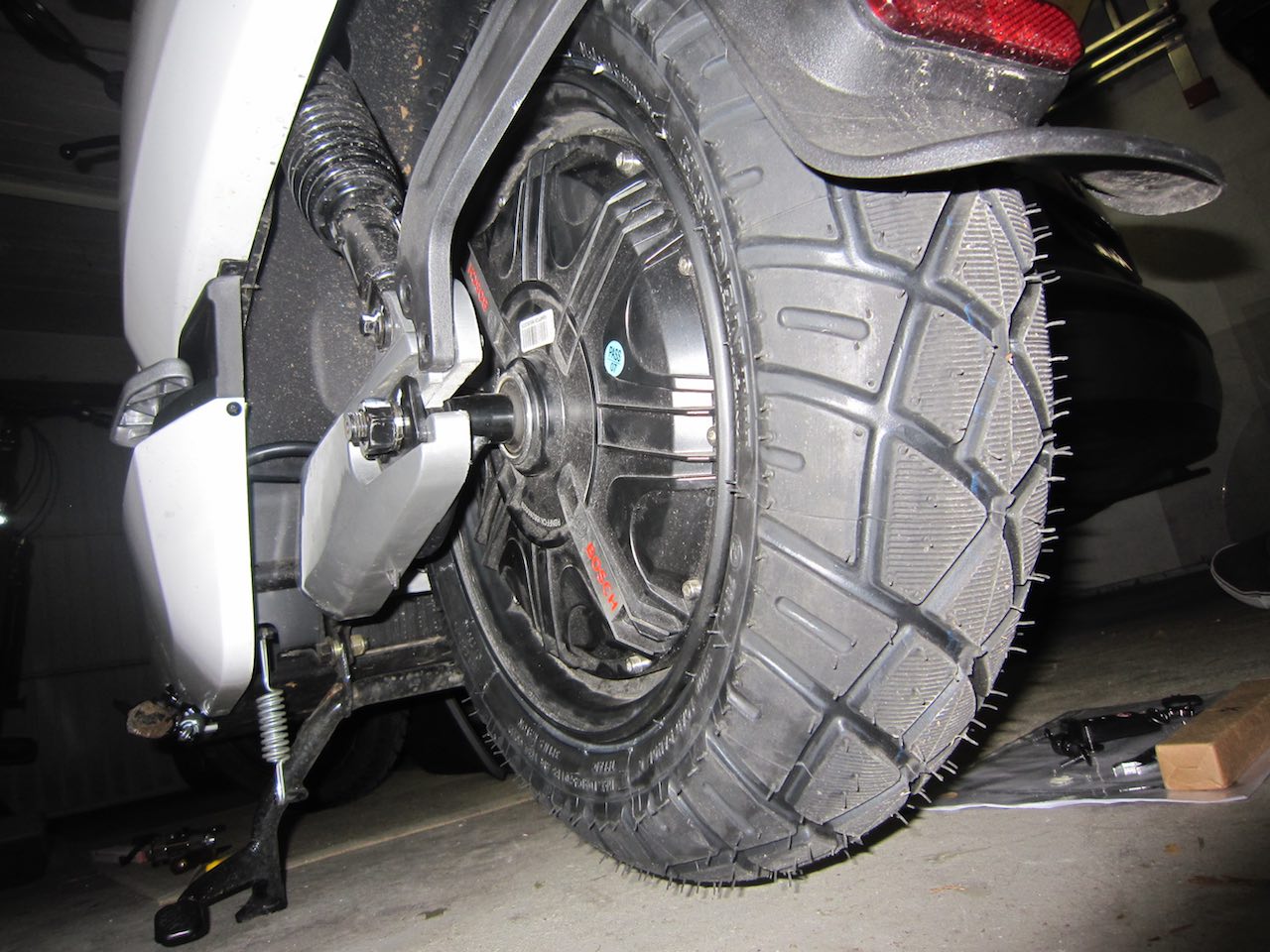 … und noch das Hinterrad (Heidenau K58 mod Snowtex 120/70-12 RF TL 58S M+S Kennung):