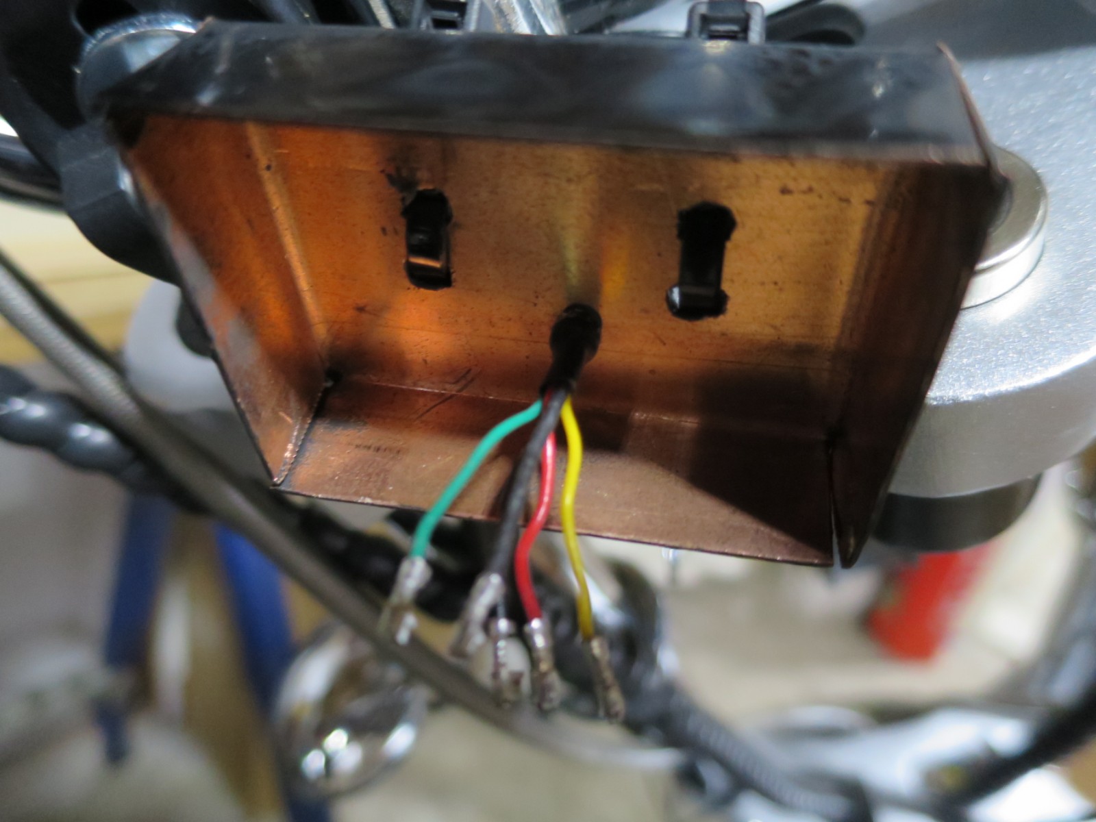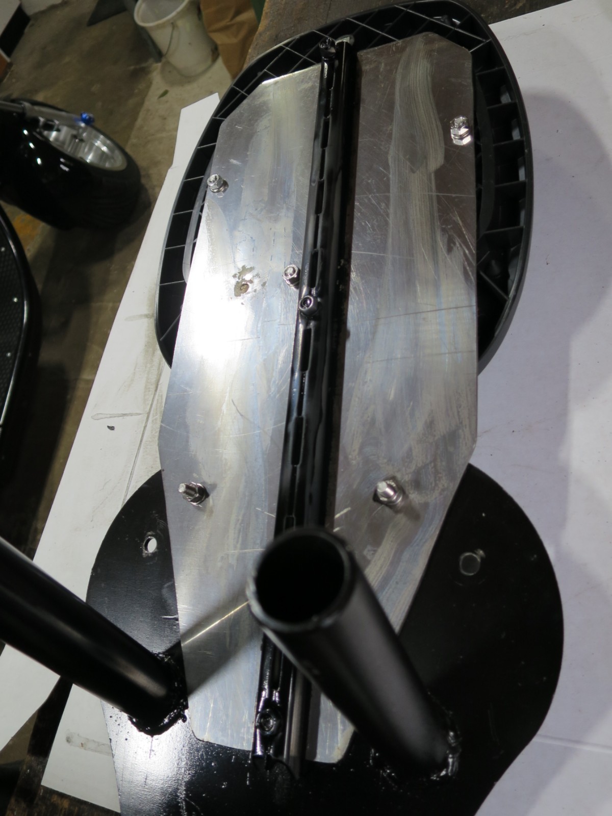 die beiden Top-Case sind montiert. Ich habe ein Edelstahlblech genommen und mittig eine Schiene zum Versteifen.