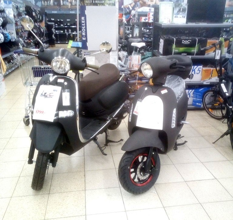 Nun habe ich gestern, kurz nachdem ich meinen Beitrag abgeschickt hatte, im Briefkasten den neuen REAL-Prospekt für nächste Woche vorgefunden, mit einem erstaunlich guten Angebot: E-Roller E2go mit 2,6KW Motor, 27V/20Ah Li-Akku für 1.399,- (abzüglich Payback 35 Euro). Beim Preis musste ich zweimal hinschauen ....