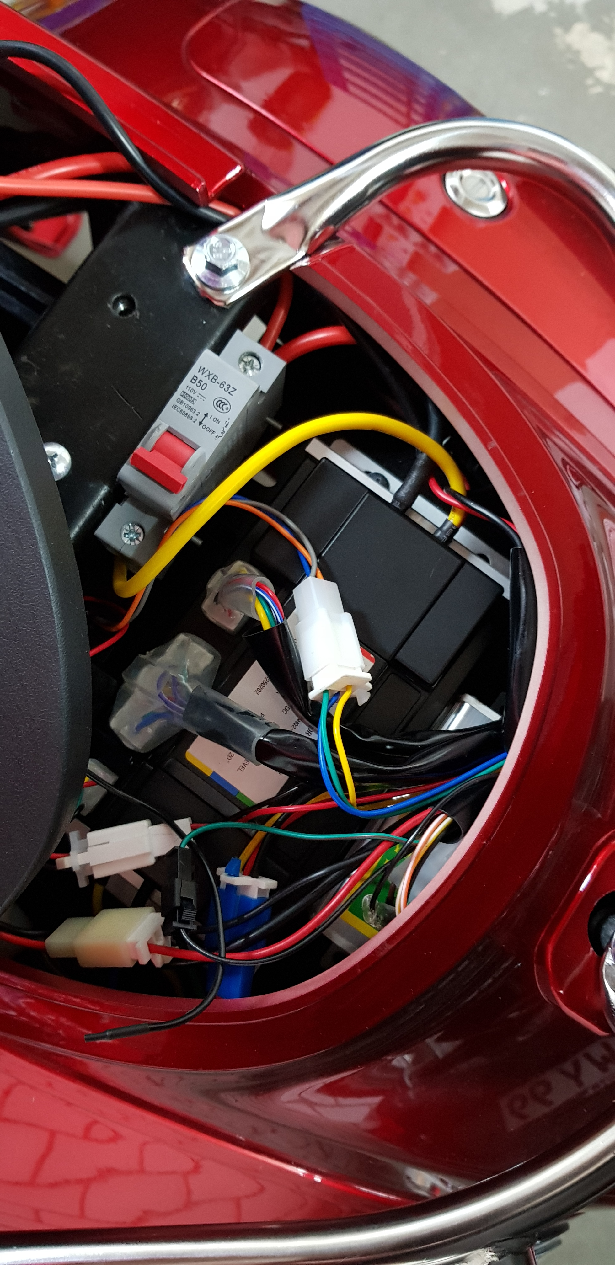 Mir ist auch sonst eigentlich keine weitere Sicherung aufgefallen. Außer eben dem Hauptschalter unter der Sitzbank, der eigentlich nichts anderes ist als ein Sicherungsautomat, wie man sie im heimischen Sicherungskasten findet.