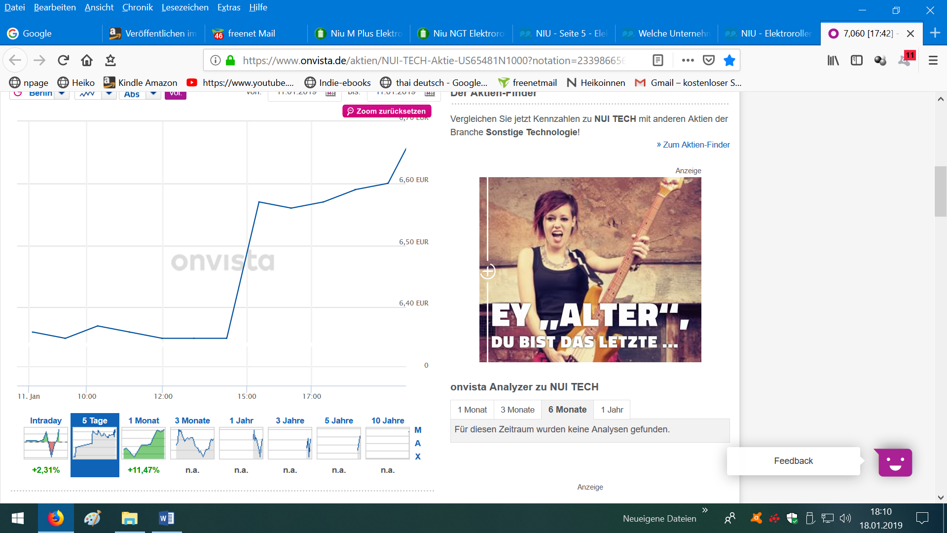 Bin gerade dabei, bei Onvist ein Depotkonto zu eröffnen mit Postident. Bin leider ewtwas zu spät dran, wie es scheint. Entschieden hab ich mich vor paar Tagen, wo die Aktie noch bei 6,60 Euro stand. Hm.