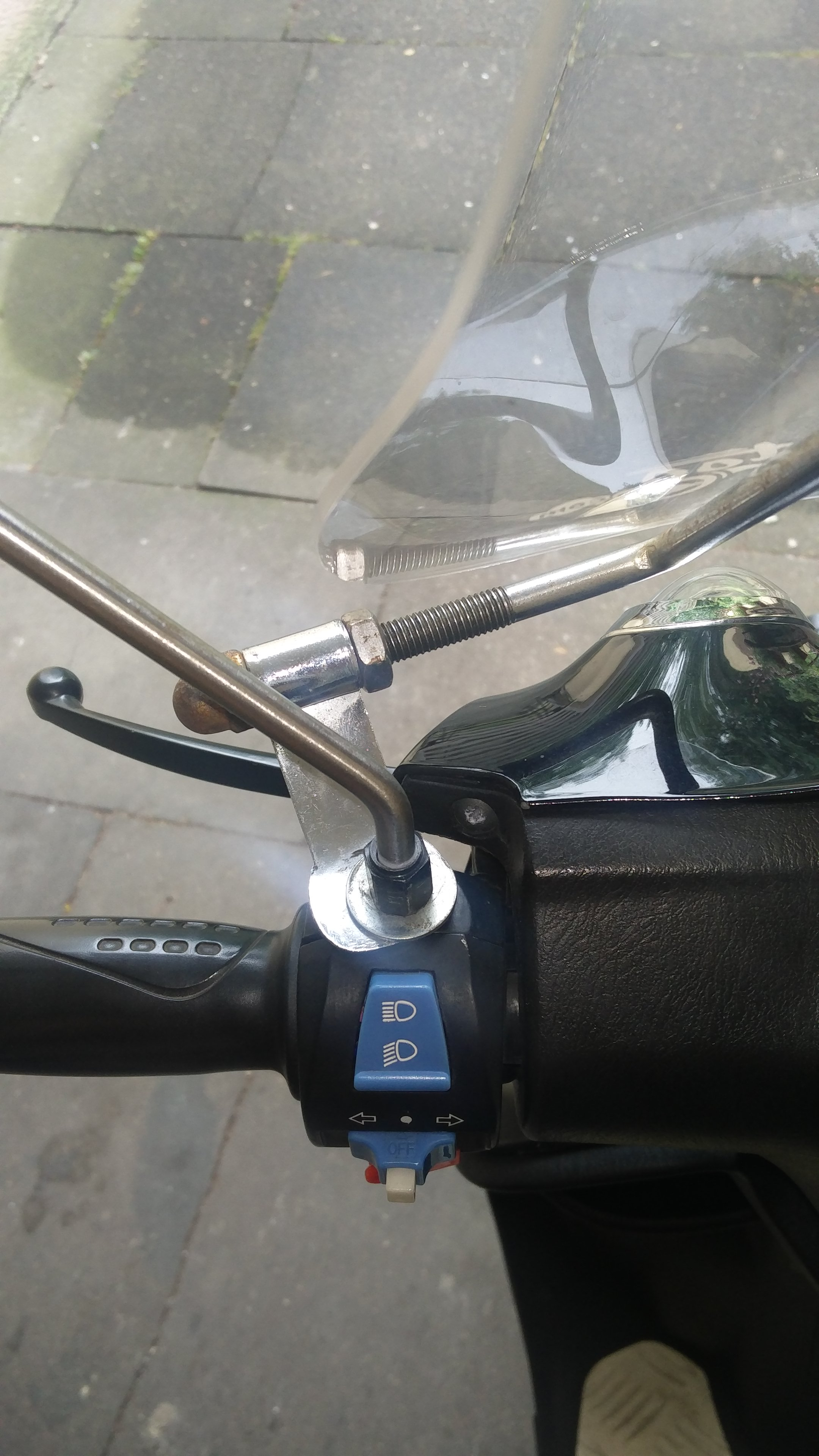 Hier Mal ein aktuelles Bild von Lenker mit Spiegel und Schild. Das Ausrichten ist nicht ganz gelungen, aber es ist fast gerade geworden.