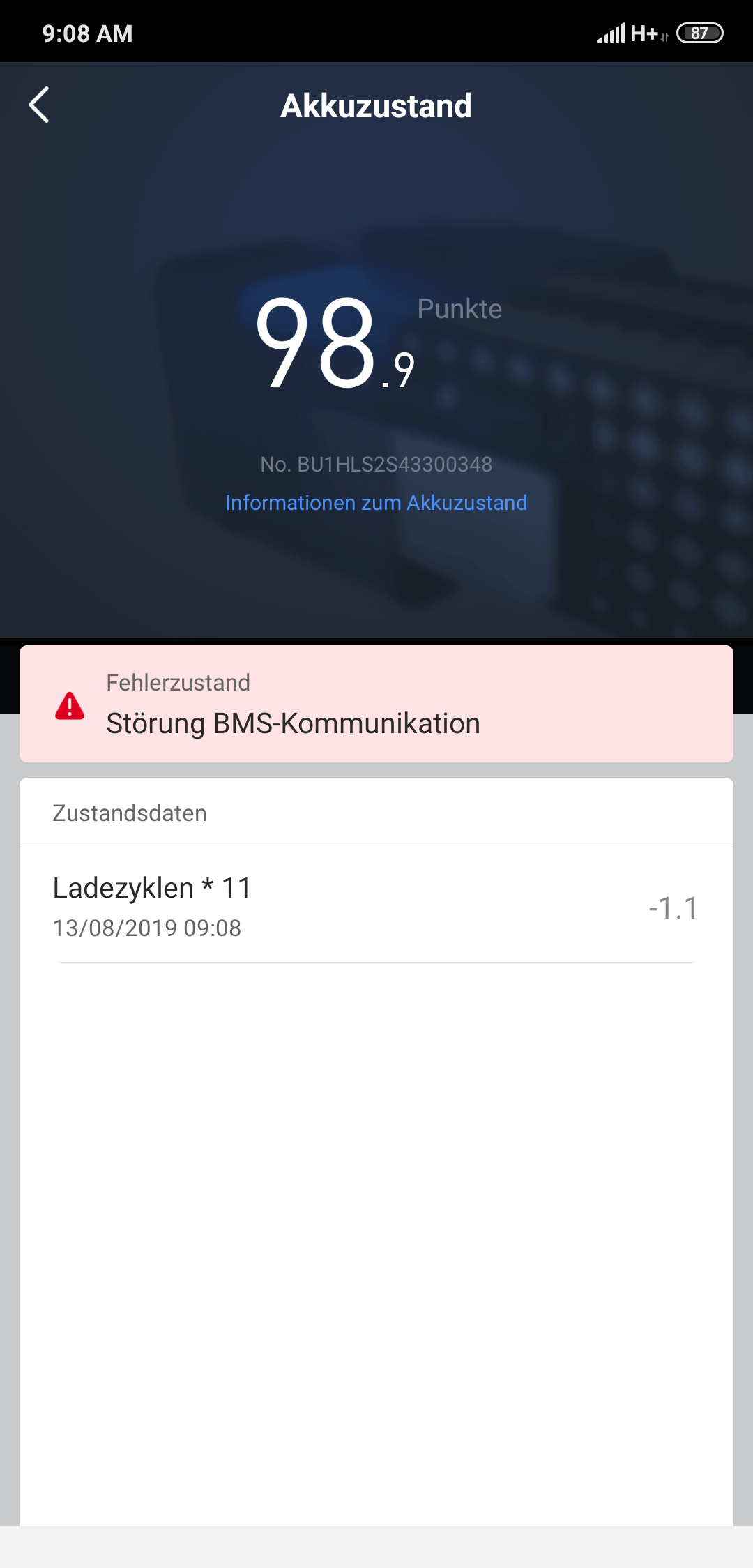 Mit dieser Niu-Erklärung stimme ich nicht überein, meine Erfahrung ist, dass der BMS-Kommunikationsfehler in der App erscheint, wenn der Roller geparkt ist, der Zündschlüssel auf "Aus" oder "Schloss" eingestellt ist, die Hauptbatterie angeschlossen ist und nach etwa anderthalb Stunden der BMS-Kommunikationsfehler auftritt.