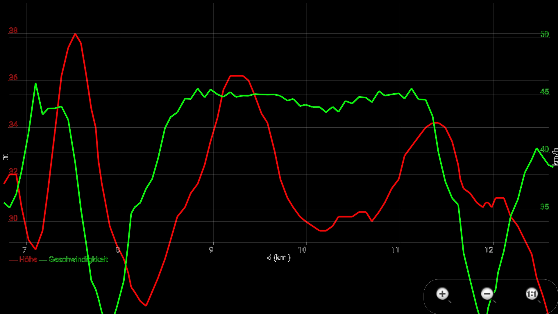 Die Anzeige geht nicht mehr über die 47 km/h hinaus, vorher 50-51 km/h.
