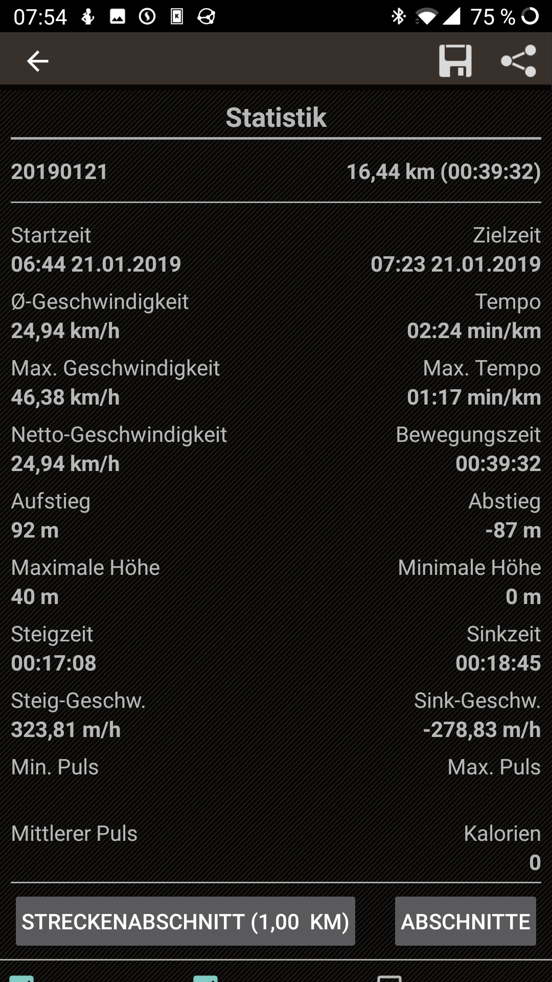 Die NIU App gibt dir nur die Route, die Streckenlänge, Start-/Endadresse, Start-/Endzeit, Dauer und die Nettodurchschnittsgeschwindigkeit. Start und Stop erfolgt automatisch. Das Handy muss dafür nicht an sein. Da sieht man auch schön, wo die Werkstatt ihre Testfahrt macht.