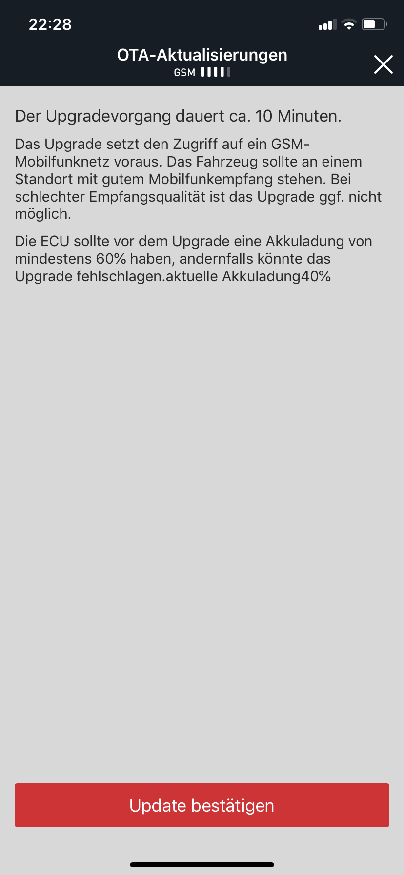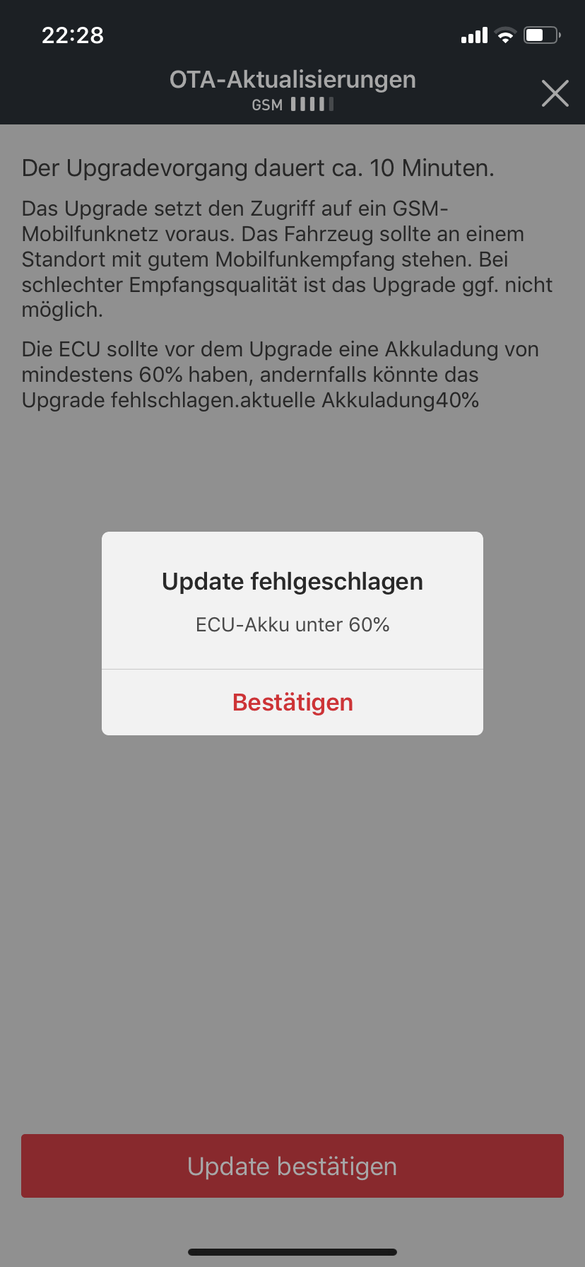 Gibt wohl ein Firmware Update um die bis Kommunikation zu verbessern. Nur lustig dass ich es nicht durchführen kann , da der ecu Akku bei mir nie über 40% laden möchte.