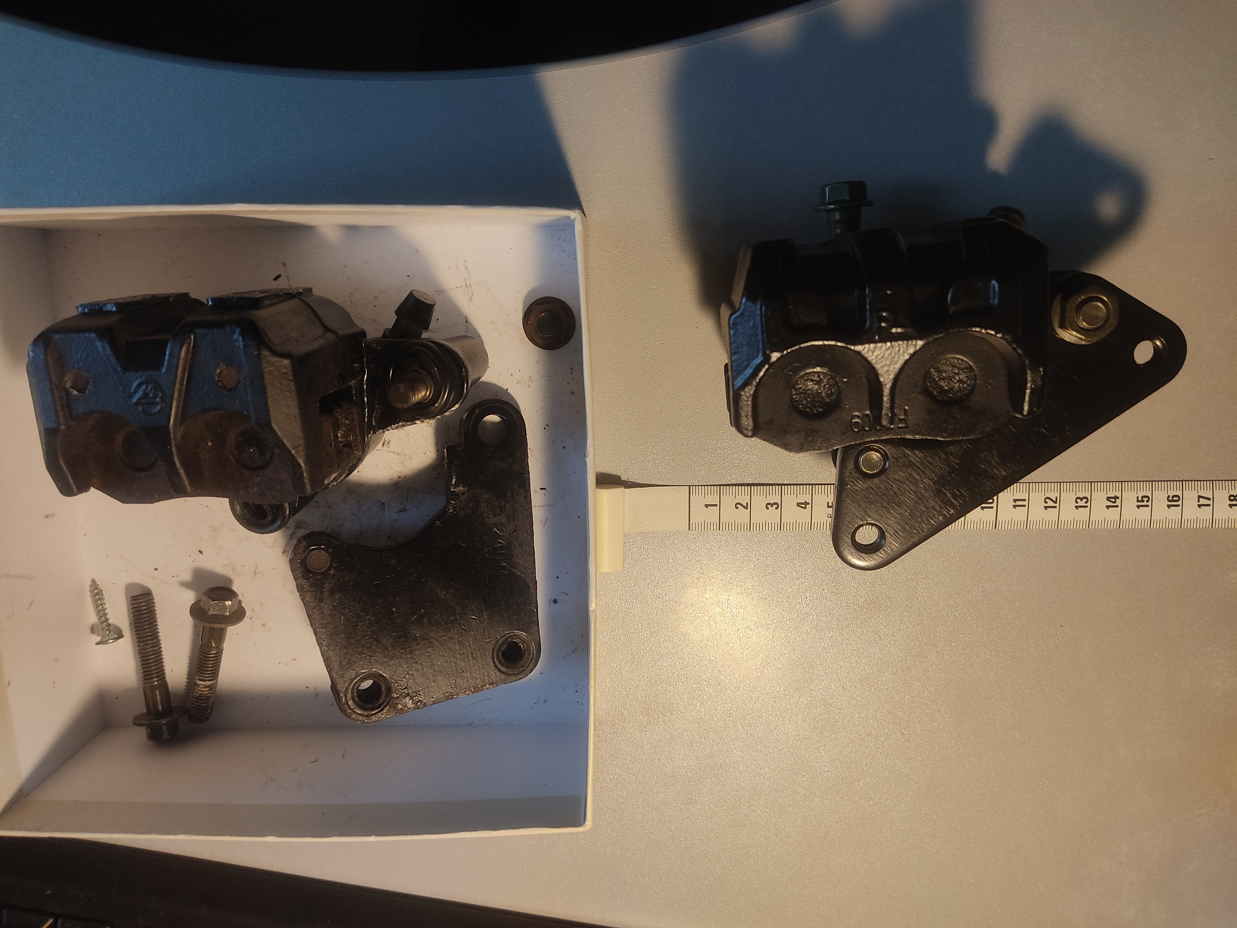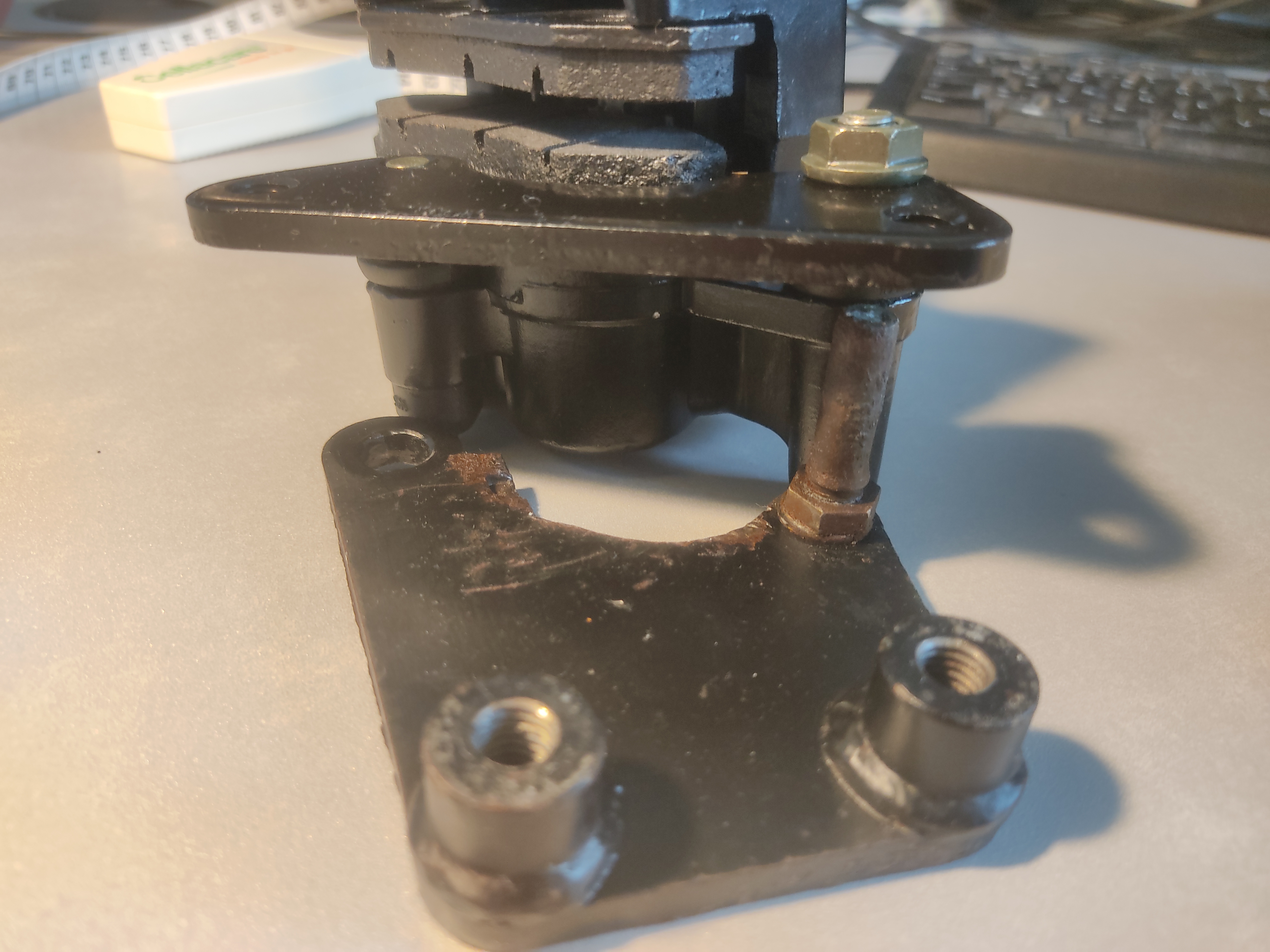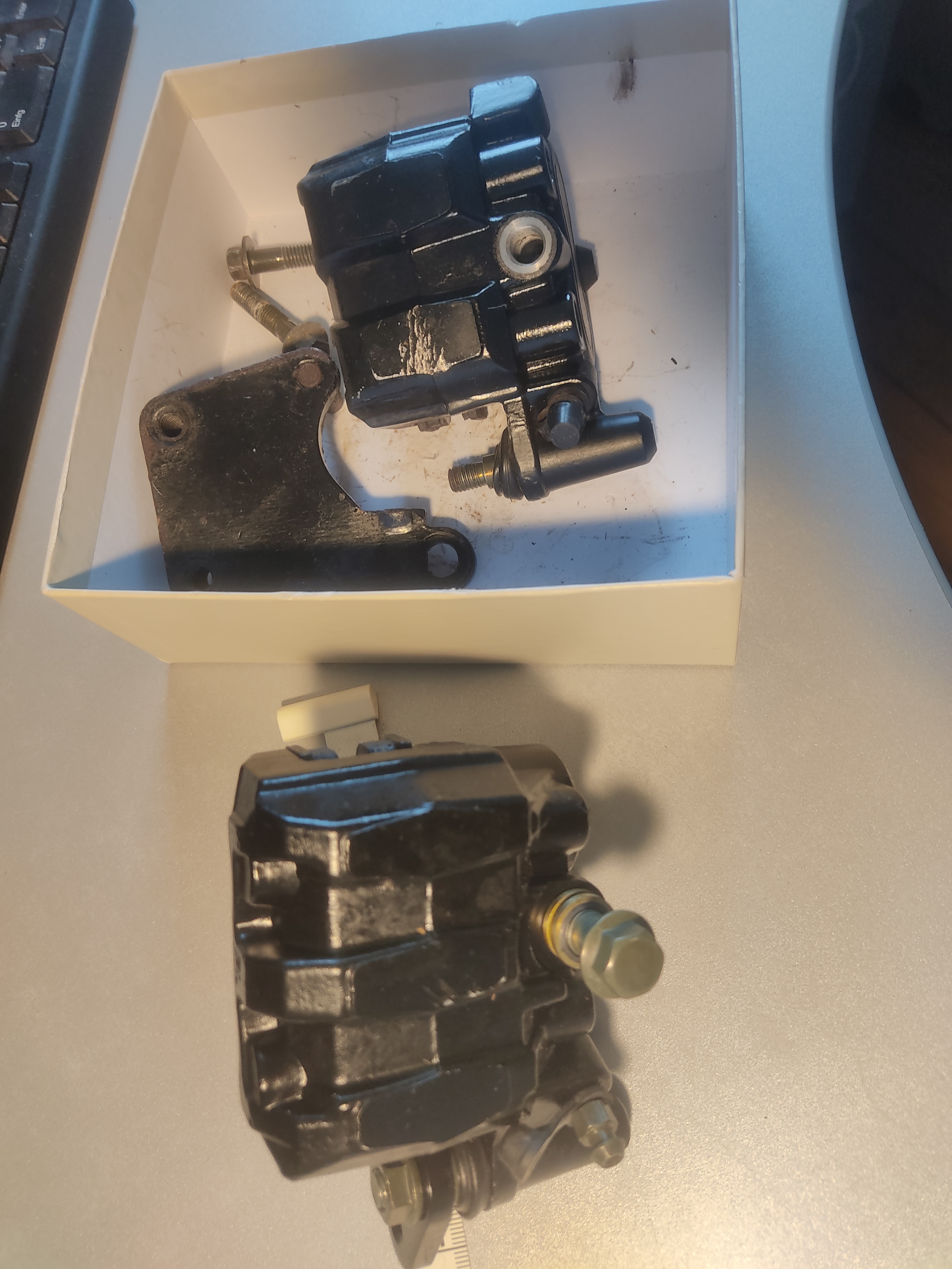Hab das Halteblech gewechselt und den dortigen Gleitstift auf das alte Halteblech gewechselt. Der Sattel ist jetzt montiert und schwimmt wie ein Olympiaathlet.
