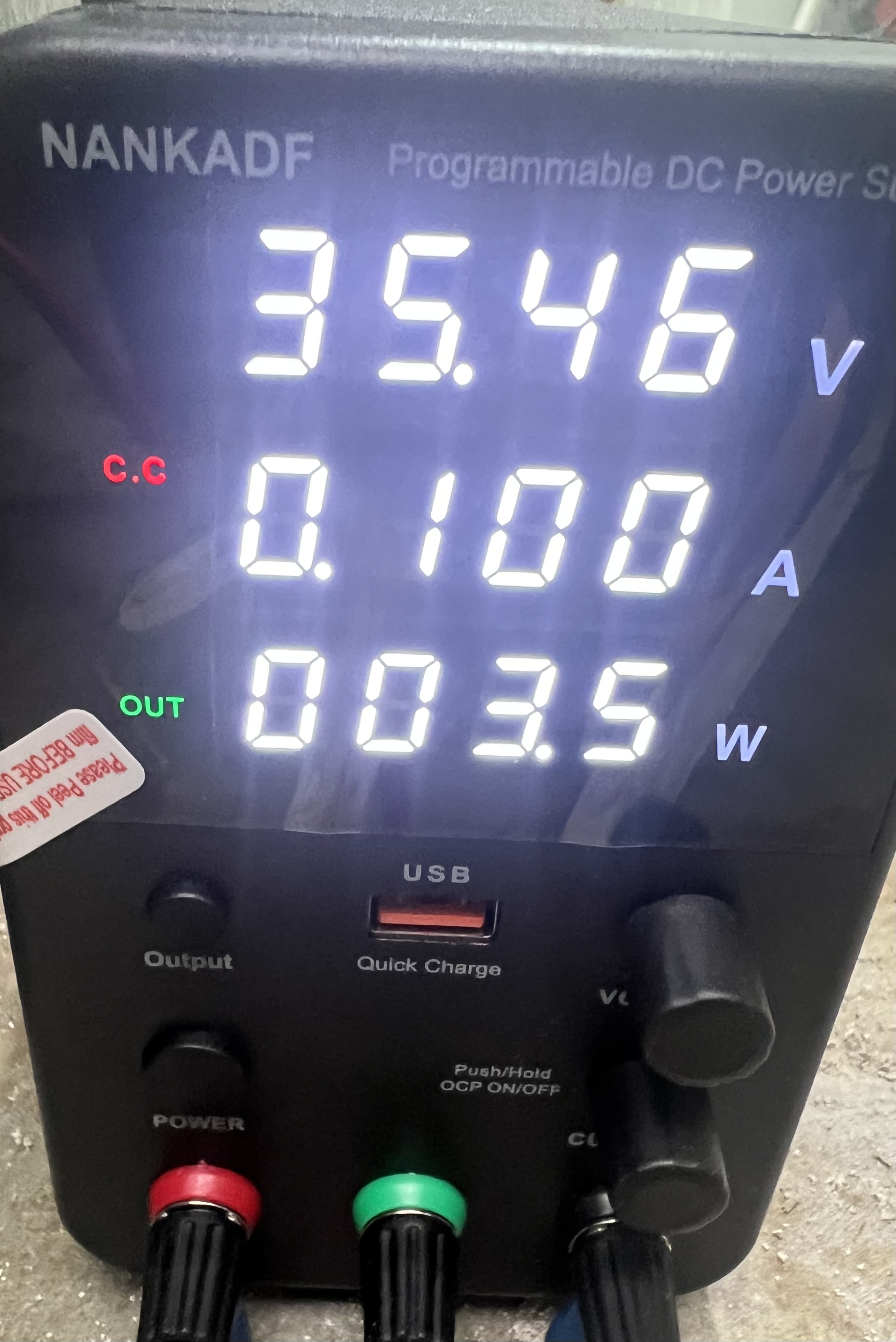 Mein Labornetzteil kann übrigens bis 120V. Hatte davor ein kleineres das aber nur bis 30V kann. Sollte also für die Aktion ausreichen Strom weiterhin bei 0.1A begrenzt. Ab 50V könnte man vlt. Den Strom etwas hochnehmen.