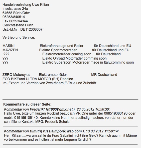 Werde aber nun gleich eine Mail an Herr Kilian senden und Ihn fragen was dieser Herr Dimitri mit diesem Eintrag wollte und weshalb dieser noch nicht gelöscht ist :-)