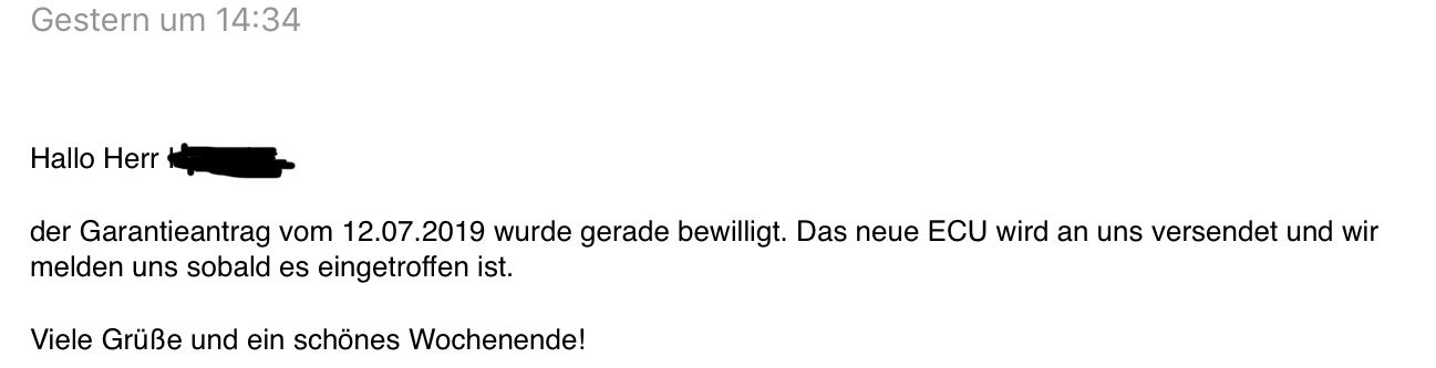 ich bekomme jetzt neue ECU, melde euch einfach bei Händler, kriegt ihr kostenlos