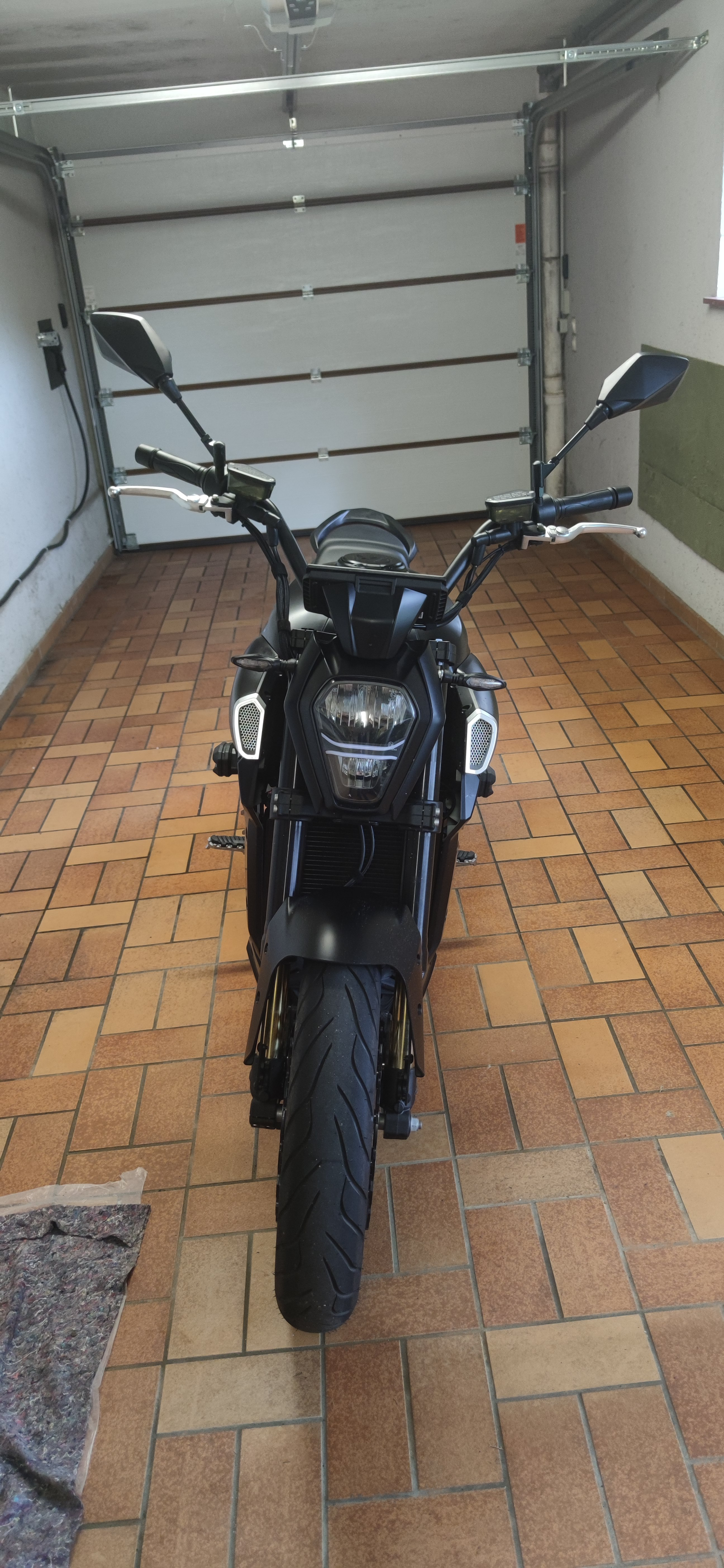 Wenn demnächst das Wetter stabiler ist und ich hoffentlich regelmäßig damit zur Arbeit fahren kann, habe ich vor den Ständer auf den überdachten Stellplätzen zu montieren, dann brauche ich da auch nur reinfahren, Bügel umklappen und Vorhängeschloss dran. Die Garage ist leider zu schmal und ich muss immer erst das Auto raus fahren. Auf der Arbeit versuche ich die dann in die Nähe einer Wand zu stellen, dann dürfte da auch nix passieren.
